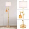• Lámpara de piso rústica de 63.5 pulgadas de alto, columna de madera sintética, acabado de hoja dorada, decoración para sala de estar, sala de lectura, dormitorio, granja rústica