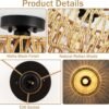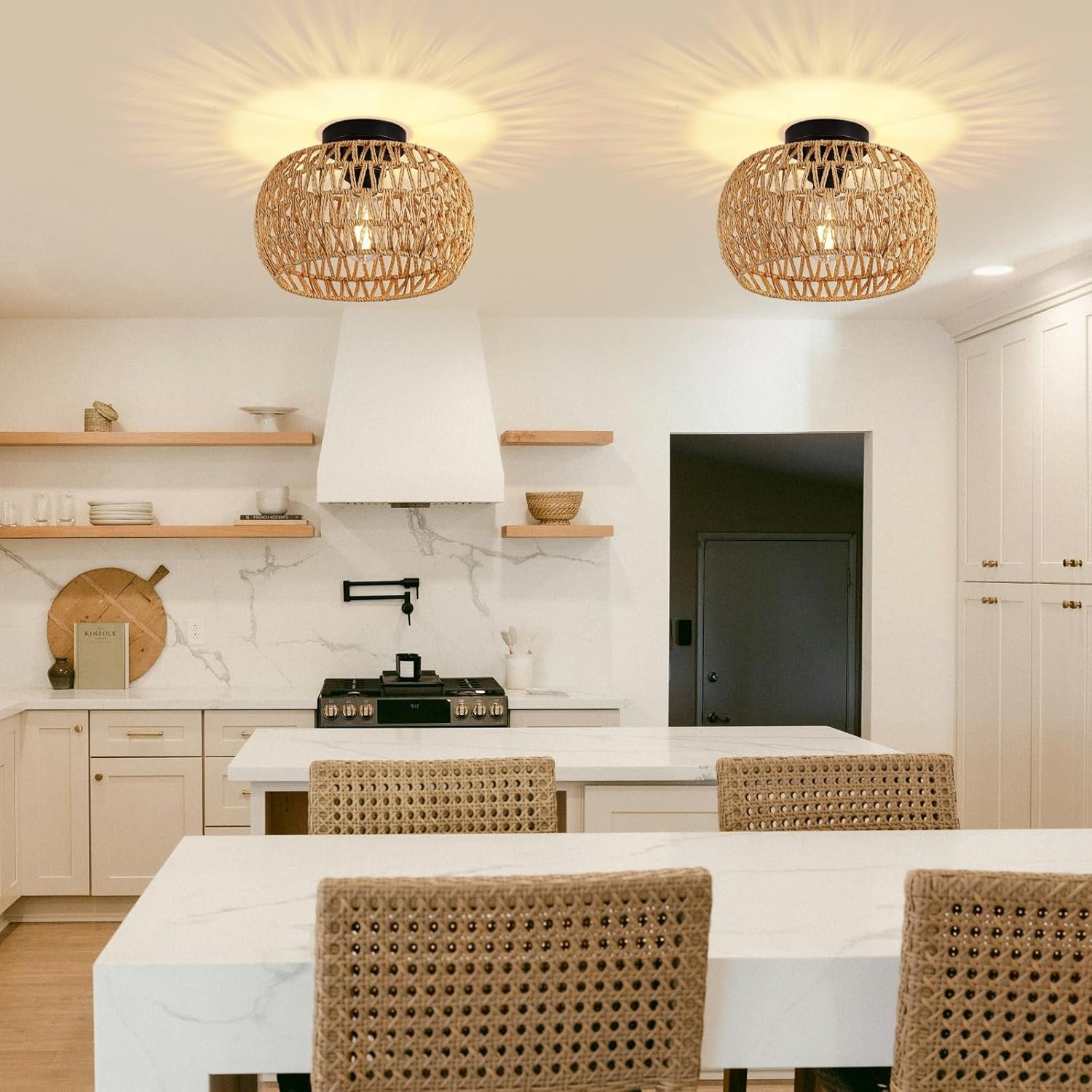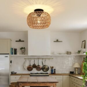 Base de bombilla E26: nuestra lámpara de techo boho requiere 1 bombilla estándar E26 y admite varios tipos de bombillas (máximo 60 W). Para un efecto regulable, se puede utilizar con una bombilla regulable e interruptor de atenuación (la bombilla y el regulador de intensidad no están incluidos) Diseño de ratán tejido a mano: con base de metal negro mate de alta calidad y pantalla de ratán natural tejida a mano, esta lámpara de techo de ratán está diseñada para mayor durabilidad y estabilidad, mientras añade un encanto rústico y orgánico a la decoración de tu hogar Fácil instalación: Con una estructura simple, esta lámpara de techo de ratán es fácil de instalar y viene con todo el hardware necesario. Con un perfil elegante que ahorra espacio (30,0 cm de profundidad x 21,0 cm de alto), es la solución de iluminación ideal para espacios pequeños que aún merecen un gran estilo Efectos artísticos de luz: el diseño único hueco de la pantalla de ratán permite que la luz cree patrones cautivadores de luz y sombra en su techo. Su aspecto elegante y artístico hace que la lámpara bohemia sea una opción ideal para interiores de granja, bohemio o de estilo costero Ideal para cualquier habitación: esta lámpara de ratán está diseñada para dormitorio, pasillo, entrada, escalera, armario, porche, guardería, cocina, balcón, granja, comedor y casa del lago, etc. Complementa una amplia gama de estilos de diseño de interiores, desde el encanto rústico del país hasta el estilo costero y bohemio moderno