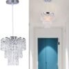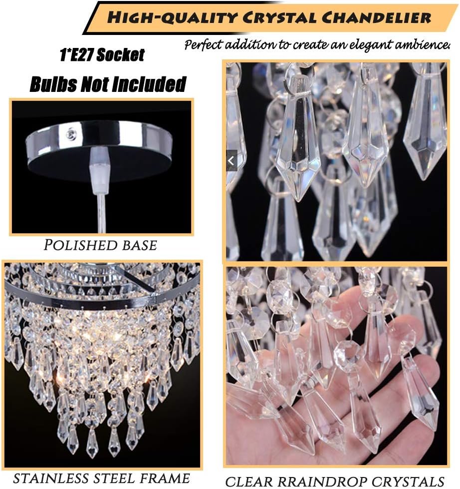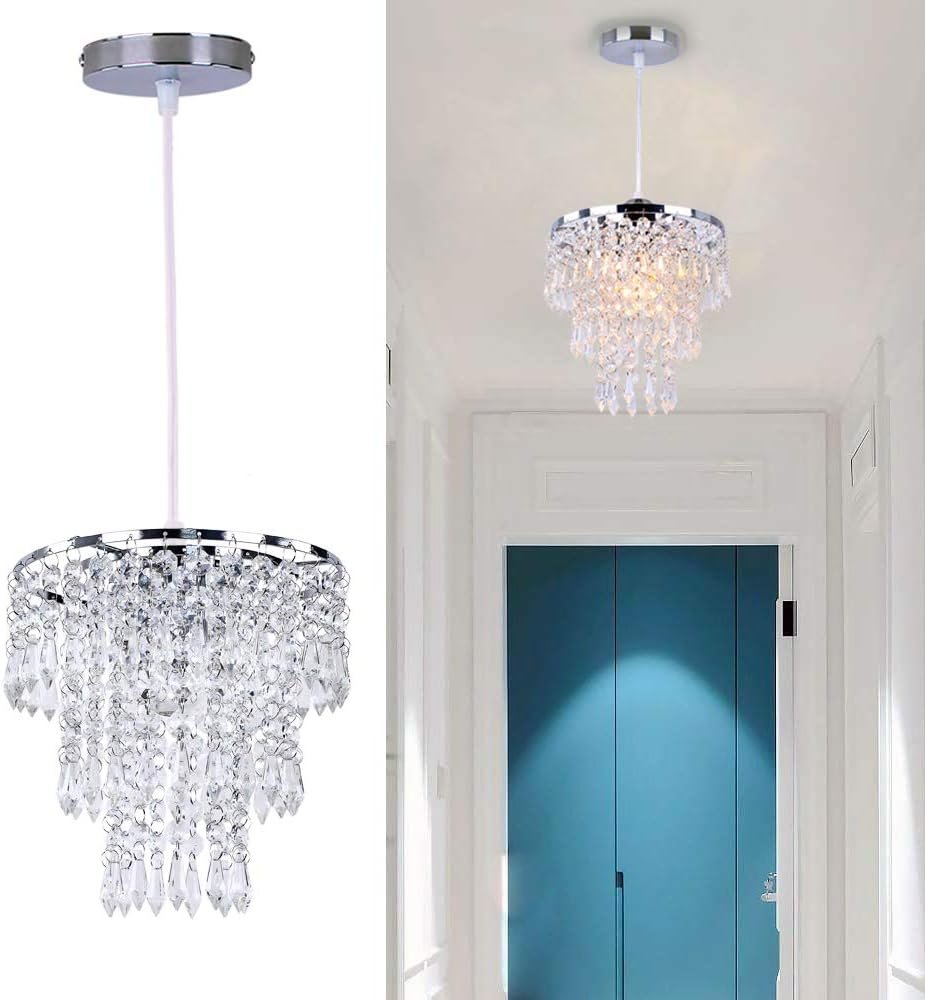 Lámpara colgante pequeña: 20 cm de profundidad x 23 cm de alto, base de techo: 12 cm, cable colgante de 60 cm (ajustable). La longitud del cable es flexible para adaptarse a tu techo como desees. Candelabro moderno: 3 capas de cristales de gota de lluvia con aspecto impresionante, marco cromado construido en acero inoxidable. Añade brillo y elegante adición a tu habitación. Tipo de montaje empotrado: CA 85-260 V. Utiliza 1 enchufe E26/E27. Viene con la lámpara colgante completa, no solo pantalla. (bombilla no incluida) Aplicación del candelabro: perfecto para sala de estar, pasillo, bar, habitación de niñas, dormitorio, centro de mesa de boda, evento de fiesta, pasillo, entrada, etc. Fácil instalación: el accesorio de iluminación de cristal está envuelto de forma segura y se instala fácilmente. No dude en contactarnos si tiene alguna pregunta.
