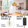 • Tamaño e interruptor de encendido/apagado: la altura total de esta lámpara colgante de mimbre es de 8 pulgadas, el diámetro es de 12 pulgadas. Nuestra luz colgante enchufable viene con un cable colgante de 15 pies que te permite ajustar fácilmente la altura para adaptarse a tus necesidades de iluminación, el interruptor situado en el enchufe de 3.5 pies del enchufe, libera de agacharte para encenderlo y apagarlo