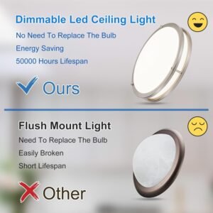 - Fuente de luz LED: la lámpara de techo tiene una nueva fuente de luz LED integrada, alto brillo, ahorro de energía y protección del medio ambiente, con una vida útil media de 50.000 horas, sin radiación UV e infrarroja, protege los ojos.