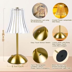 Precioso diseño de lámpara de cristal con baterías: colisión vintage y hermosa. Lámparas de mesa portátiles sin cable, aspecto cmvintage cm y acabado dorado que se adaptan a varios estilos de decoración. La lámpara de mesita de noche con batería para el dormitorio con pantalla floral a juego, lámpara de lujo recargable de oro, cuerpo pequeño inalámbrico y base resistente, llena de estética. Lámparas únicas que crean sorpresas y romance en la vida. La lámpara decorativa es perfecta para decoración antigua y decoración vintage. Excelentes luces para añadir ambiente y amor romántico. Sin instalación y resistente: la lámpara inalámbrica de cristal se puede utilizar inmediatamente en casa. Lámpara recargable portátil hecha de material de alta calidad: acrílico, lámparas de mesa inalámbricas vintage con línea de borde suave. Emitiendo un brillo similar al cristal a través de la pantalla acrílica, la lámpara táctil dorada de operación por batería captura la luz, mostrando un brillo opulento y brillante. Además, la base resistente y la almohadilla antideslizante de la pequeña lámpara táctil garantizan un soporte estable y evitan arañazos en muebles y mesas. Ahorro de energía y sin parpadeo: esta lámpara de mesa inalámbrica utiliza perlas LED, usa sin esfuerzo un 80% menos de energía que las bombillas tradicionales, minimizando el consumo de energía y ahorrando tu dinero. Y la lámpara táctil LED portátil para interiores y exteriores emite una iluminación relajante, sin parpadeos para proteger tus ojos, perfecta para aquellos que disfrutan leyendo en la cama. La lámpara de mesa táctil a batería combina perfectamente elementos contemporáneos y vintage, te da luz adicional donde la necesitas mientras que también añade un poco de personalidad. Lámpara de mesa fácil de tocar y regulable en 3 colores: la lámpara de cristal sin cables cuenta con atenuación continua y control táctil sensible. Solo toca el botón de metal para cambiar el brillo de la mini lámpara de mesita de noche de brillante a suave. 3 colores (3000K/4500K/6000K), cambia el modo de luz haciendo clic; mantén presionado el interruptor para atenuar suavemente entre un 20% y un 100% de brillo, lo que te permite cambiar fácilmente el brillo y personalizar la iluminación para adaptarla a varios estados de ánimo. Puede usarse como lámpara de mesita de noche para uso nocturno, sin preocuparse por tocar el interruptor. Lámpara recargable con batería de 2600mAh y lámpara portátil inalámbrica: lámpara de cristal con batería incorporada de gran capacidad de 2600mAh con puerto de carga tipo C (vienen con un pequeño cargador USB), ya no se preocupe por un corte de energía y el desperdicio de dinero en la batería. Pequeña lámpara regulable y recargable que te acompaña en todas las dulces noches. Por la noche, la lámpara de cabecera inalámbrica táctil es una luz de cristal romántica y hermosa, la lámpara recargable con batería es buena para cortes de energía. No es solo una lámpara: la bonita luz ofrece un ambiente cálido a cualquier habitación. Esta lámpara de flores inalámbrica, lámpara vintage, lámparas de mesa únicas que añaden decoración vintage, puede colocarse en su dormitorio, comedor, cocina o habitación infantil. Las lámparas táctiles LED son bonitas y pequeñas. Lámparas táctiles de mesita para dormitorio, lámparas de escritorio para sala de estar, lámparas mini operadas por batería, adecuadas para todo tipo de escenas, una lámpara tan encantadora para decorar tu mesa de café, mesa de comedor, mesa auxiliar, restaurantes, bares, fiestas o patio exterior. Regalo Ideal Perfecto: Desde el momento en que se desempaqueta, el regalo muestra su verdadera esencia: una combinación perfecta de practicidad y belleza. No es solo un regalo, sino también un puente entre tú y tu familia, hijos y amigos. Bonita lámpara de mesa inalámbrica para mesita de noche que crea un efecto fascinante único, la lámpara de mesa inalámbrica de cristal es perfecta como regalo de Navidad, regalos de San Valentín, regalos de cumpleaños, como regalos de boda, regalos de cumpleaños para mejor amiga, regalos de aniversario para ella. Calidad y servicio al cliente: Lámpara de mesa inalámbrica recargable, los productos incluyen luz de mesa*1, cable de carga*1 y guía del usuario*1. Cada lámpara recargable operada por batería será estrictamente inspeccionada durante la producción y el empaquetado para garantizar la excelente calidad del producto. Si encuentra algún problema con su lámpara de mesa, por favor contáctenos inmediatamente. Respondemos rápidamente en un plazo de 24 horas. Nos dedicamos a proporcionar lámparas de flores de alta gama, lámparas vintage, lámparas pequeñas, lámparas de mesita de noche, lámparas de dormitorio.