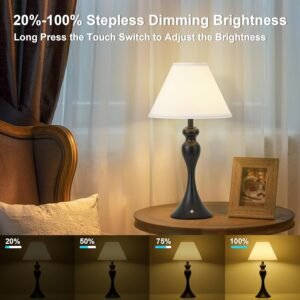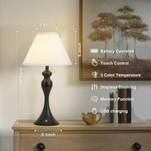 Lámpara de mesa portátil inalámbrica: una batería recargable de 6000 mAh alimenta hasta 150 horas de luz continua en el modo más bajo (adaptador incluido). Confíe en él como una lámpara de emergencia durante las interrupciones. Su función inteligente de ahorro de energía atenúa automáticamente el brillo cuando la batería se agota, extendiendo hasta el último minuto de duración de la batería, para una iluminación sin cables, en cualquier lugar 3 temperaturas de color y lámpara táctil de atenuación continua: interruptor táctil de luz entre cálido (3000 K), natural (4000 K), frío (6000 K); pulsa larga ajustar el brillo del 20% al 100%. Con una bombilla LED integrada, esta lámpara de mesa ligera y portátil funciona con pilas ofrece un control de iluminación flexible y sin esfuerzo perfecto para tu hogar, oficina, dormitorio o cualquier espacio que necesite un ambiente personalizable e iluminación de tareas La mejor opción para la decoración de lámpara de mesa: esta elegante lámpara táctil recargable cuenta con una silueta esculpida y una pantalla blanca, luz enfocada y sin reflejos que eleva instantáneamente escritorios, mesitas de noche o mesas auxiliares. Sus líneas únicas y atemporales combinan el encanto vintage con el minimalismo moderno, por lo que es un toque final sin esfuerzo para cualquier estilo de decoración Iluminación versátil para el hogar con función de memoria: construida con metal resistente, esta lámpara de mesa se adapta perfectamente a cualquier espacio, ya sea un tocador, mesita de noche, escritorio de oficina, mesa de sofá o incluso una guardería. Gracias a su conveniente función de memoria, recuerda automáticamente tu último brillo, por lo que no hay necesidad de reajustar cada vez. Perfecto para el uso diario o como un maravilloso regalo para cumpleaños, inauguraciones de la casa o bodas Fabricante profesional de 5 estrellas: 30 años de experiencia en producción, importación a empresas de EE. UU., ahora al por menor a los consumidores directamente. La mejor calidad aseguradora, el mejor servicio asegurando, prueba de caída, embalaje fuerte, apenas tiene como objetivo proporcionar accesorios de iluminación perfectos para usted