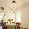 • 【Lámparas de araña de cristal modernas】Color de la luz de las lámparas LED: blanco cálido, dimensiones del anillo: 7.9 pulgadas + 15.7 pulgadas. Tamaño de la placa de techo: 7.1 pulgadas. Puede ajustar la altura del alambre colgante máxima de 47 pulgadas.