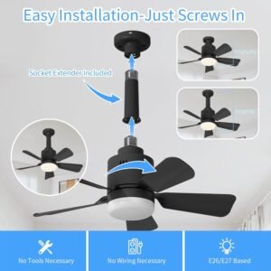 Luz de ventilador de enchufe 2 en 1 La luz de ventilador LANMEL combina un ventilador de techo + bombilla LED ultra brillante en uno Perfecto para dormitorios, cocinas, garajes y más, sin necesidad de accesorios separados. Disfruta de la refrigeración y la iluminación al instante Instalación inalámbrica y rápida Este ventilador de techo con portalámparas se atornilla en cualquier casquillo E26/E27 ¡sin cableado! Incluye un extensor de enchufe. ¡Más rápido y fácil que los ventiladores tradicionales! Función de atenuación y memoria Ajusta el brillo (10%-100%) y cambia entre 3 temperaturas de color (3000K-6500K). La luz del ventilador de enchufe con control remoto recuerda tu última configuración ¡no necesita reiniciarse! Ventilador de techo Smart Socket Breeze con control remoto y aplicación: controla la velocidad y la luz del ventilador a través del control remoto/aplicación. Establece un temporizador (1/2/3/4H) y la memoria automática guarda las preferencias. (Pilas no incluidas) Servicio al cliente Este pequeño ventilador de techo con luz no requiere un montaje complicado, simplemente instala las aspas del ventilador y móntalo al portalámparas. Si encuentras problemas, ¡consulta el manual del usuario o ponte en contacto con nosotros a través de Amazon!