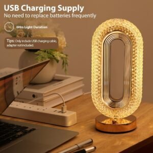 Crea un ambiente moderno: ilumina con la luz nocturna regulable romántica y ovalada que proyecta un resplandor cálido y acogedor. Perfecto para crear un ambiente de dormitorio tranquilo y acogedor. Ideal como decoración del hogar para mesitas de noche, habitaciones infantiles, estudios, salas de estar o decoraciones de fiesta de Navidad, transformando cualquier espacio en un país de las maravillas de ensueño. Control táctil para cambiar la luz: ajusta fácilmente el brillo a través de la base sensible al tacto. Toque prolongado para atenuación continua, y pulsación corta para 3 modos de color (Luz fría/ Luz natural/ Luz cálida), satisfaciendo las necesidades de diferentes eventos. Es lo suficientemente brillante como para ser una lámpara de lectura, pero lo suficientemente tenue como para ser una encantadora luz nocturna. Recargable USB-C y portátil – Alimenta la lámpara de noche recargable USB en cualquier lugar con el cable tipo C incluido (compatible con laptops/bancos de energía/adaptadores). Disfruta de más de 6 horas de duración de la batería por carga, perfecto para uso junto a la cama, viajes o cortes de energía. Diseño Elegante y Estable – Nuestra lámpara de mesita de noche consiste en una pantalla acrílica en forma de diamante, bombillas LED y base de metal, duradera y hermosa. Cuando está encendida, la luz y la delicada pantalla se complementan entre sí, emitiendo un resplandor encantador en la noche oscura. Mientras está apagada, la pantalla acrílica sigue siendo elegante y se convierte en una excelente decoración! La base antideslizante permite que se mantenga firmemente en la mesa. Regalo Práctico y Bonito – Nuestra lámpara de control táctil es perfecta para tu pareja, familiares y amigos como regalo de Navidad, Año Nuevo, cumpleaños, San Valentín o conmemorativo, añadiendo una luz encantadora a su oscuridad. ¡Nadie puede rechazar una decoración tan encantadora! Tamaño: 10.24×4.92×9,5 cm / 26×12.5×9.5 cm.