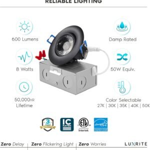 Luxrite Luz empotrable LED cardán de 3 pulgadas con caja de