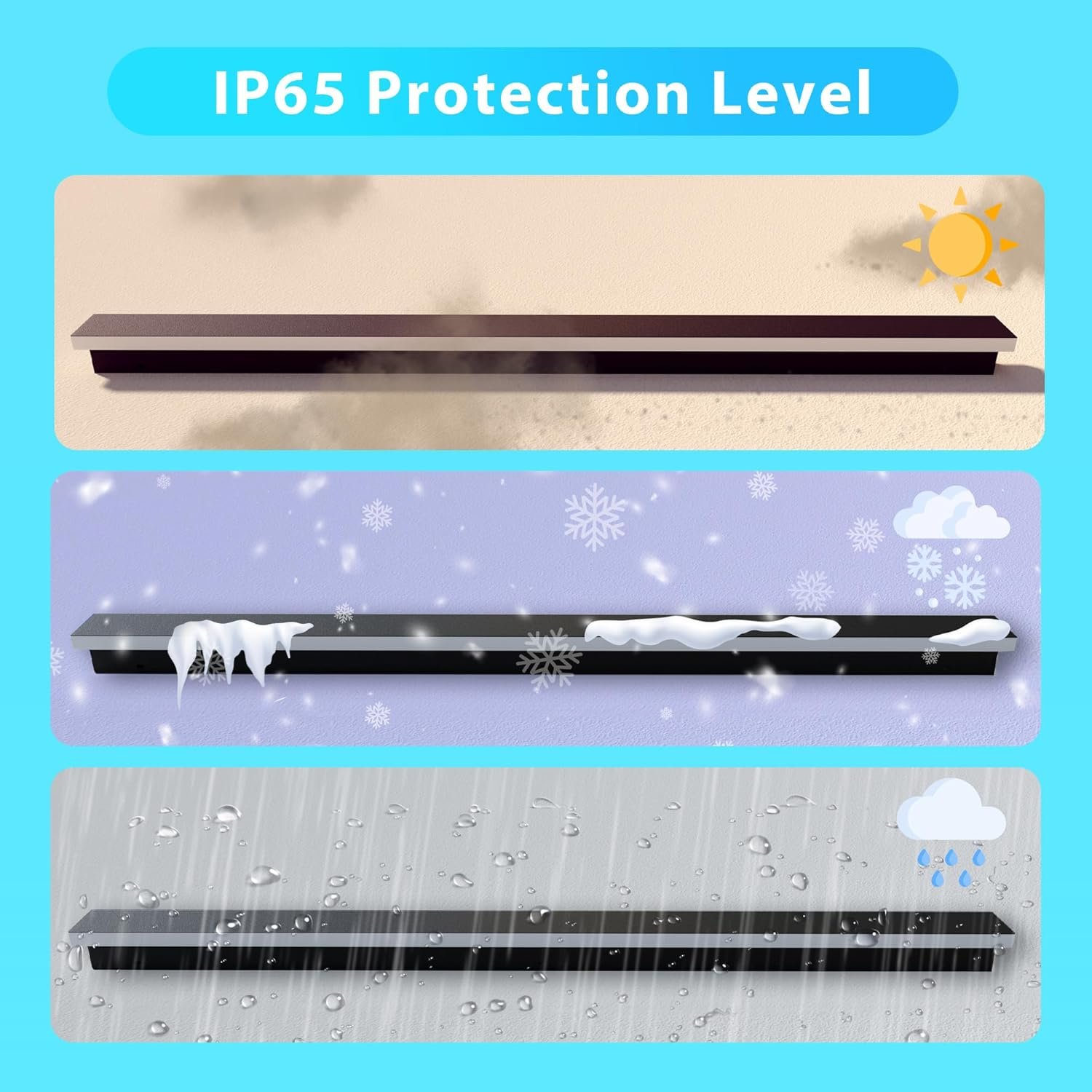 Lámpara de pared larga y moderna para exteriores: esta linterna de pared para exteriores adopta un diseño rectangular, aspecto simple y elegante, no ocupa espacio; la lámpara de pared negra añade un toque de estilo a tu hogar, creando un ambiente cálido tanto en interiores como en exteriores. (Atención: el ancho de la cubierta trasera es de 4,0 cm. Confirme si puede cubrir su caja de conexiones. También puede utilizar una placa adicional para la cobertura si es necesario) Especificaciones del producto: Tamaño: L7.88in/L11.82in/L23.63in/L31.5in/L39.38in/L45.28in/49.22in/59.05in; Potencia: 7W/9W/20W/26W/32W/37W/40W/45W; Ancho: 1.97 in; Altura: 1.97 in; Lúmenes: 600-4000lm; Voltaje: 110V; Temperatura de color: 3000K; El cuerpo de la luz está hecho de hierro de metal de alta calidad y aleación de aluminio, que es resistente a la corrosión y no se dobla fácilmente; el lateral está hecho de acrílico esmerilado, transmisión de luz uniforme, brillante y sin deslumbramiento; Metal de alta calidad, sin óxido, fuerte y duradero. Luz de pared impermeable IP65: Nuestra luz de pared LED para exteriores tiene la función impermeable de IP65, que puede proteger contra la intrusión de agua, escarcha, lluvia, nieve, granizo y polvo; al mismo tiempo, utilizamos el controlador LED que alcanza IP67, que tiene protección contra cortocircuitos y diseño de protección contra sobrecarga; por lo tanto, nuestras luces de pared para exteriores aún pueden funcionar normalmente incluso en varios climas adversos (como: lluvia fuerte, nieve fuerte, granizo), no tienes que preocuparte por el problema. Adequado para Luces de Pared Interior y Exterior: La luz de pared LED no solo se puede instalar vertical u horizontalmente, sino también en el techo; también puedes comprar varias luces para formar la combinación de luces que desees; por lo tanto, no solo puede combinar perfectamente con tu villa, jardín, porche, pasillo, entrada, pasillo, patio, balcón, garaje, entrada de la puerta, sino que también se puede instalar en dormitorios, salas de estar, salas de estudio, escaleras, mesas de comedor, baños y otras escenas interiores. Servicio posventa: todos los accesorios necesarios para la instalación de la lámpara de pared están incluidos en un paquete, junto con las instrucciones de instalación. La instalación es muy sencilla. Si tiene más preguntas, póngase en contacto con nosotros para obtener ayuda, y le proporcionaremos una solución satisfactoria.