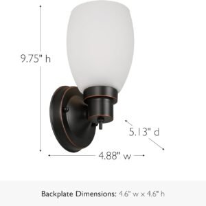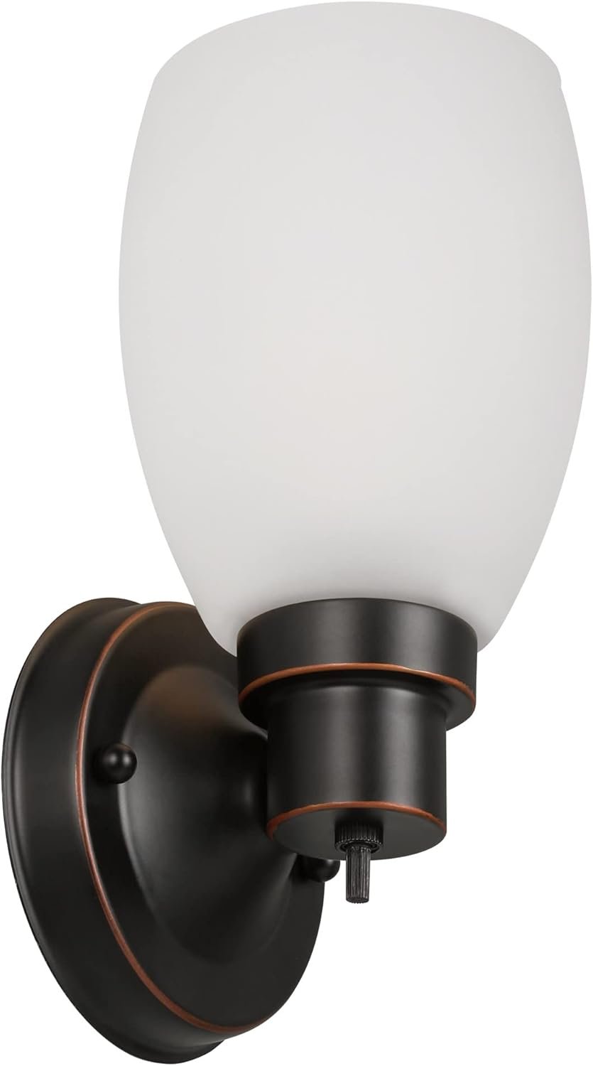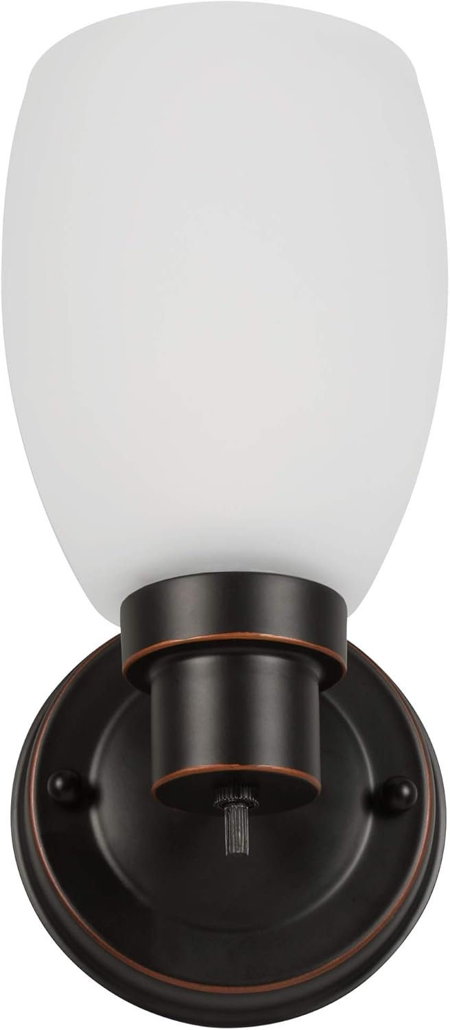 Diseño clásico: El acabado de bronce aceitado con pantalla de vidrio esmerilado mejora espacios modernos y tradicionales Iluminación flexible: se puede montar hacia arriba o hacia abajo para adaptarse a sus necesidades de iluminación Tamaño compacto: mide 24.46 cm (alto) x 12.07 cm (largo) x 13.03 cm (profundidad), ideal para baños, vestíbulos, pasillos y más Opción de bombilla: enchufe E26 para bombilla de base media estándar o equivalente LED (no incluido) Opción regulable: Totalmente regulable cuando se combina con un interruptor regulador compatible (se vende por separado) Control conveniente: el interruptor giratorio incorporado permite una función de encendido/apagado rápido
