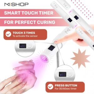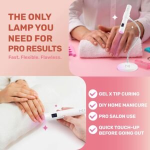Diseño versátil 2 en 1: la luz de curación flash M para uñas Gel X cuenta con un diseño de modo doble, lo que te permite cambiar sin esfuerzo entre los modos de escritorio y de mano. Esta lámpara de uñas de gel proporciona la máxima flexibilidad y comodidad, por lo que es perfecta tanto para uso profesional como para el cuidado de las uñas en casa. Tecnología Focus Beam: la lámpara M Gel X garantiza un curado rápido y eficiente para todos los productos de uñas de gel con sus potentes bombillas UV y LED de 9 vatios. Su tecnología Focus Beam ofrece un haz de luz preciso y concentrado para un curado uniforme, lo que lo hace ideal para gel X, aplicar puntas y crear intrincados diseños acrílicos. Temporizador de pantalla táctil: personalice fácilmente los tiempos de curado con la pantalla táctil intuitiva de esta lámpara de curado de luz de uñas para obtener resultados precisos y óptimos, asegurando que cada aplicación se adapte perfectamente a sus necesidades. Lámpara de uñas UV con sensor incorporada Mini: La luz de gel x se activa automáticamente cuando se inserta la mano, lo que hace que el proceso de curado de uñas sea perfecto y sin esfuerzo. Esta característica inteligente de la mini lámpara de uñas M agiliza tu rutina para una experiencia más cómoda. Diseño compacto y portátil: la luz M Flash Cure para uñas Gel X cuenta con un diseño elegante y ligero, por lo que es fácil de almacenar y transportar. Perfecto para profesionales en movimiento o cualquier persona que busque mantener uñas de calidad de salón donde quiera que estén. Regalo ideal para el Día de la Madre: deleita a mamá una lujosa experiencia de manicura en casa con esta lámpara de uñas UV de alta calidad. Secado rápido y fácil de usar, es la manera perfecta para que ella disfrute de uñas dignas de salón en la comodidad de su propia casa, haciendo que cada momento de cuidado personal sea extra especial. Complemento perfecto para cualquier juego de regalo de esmalte de uñas.