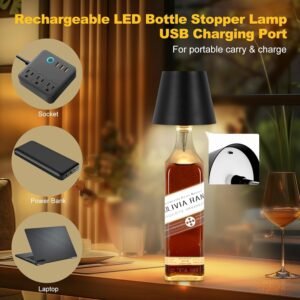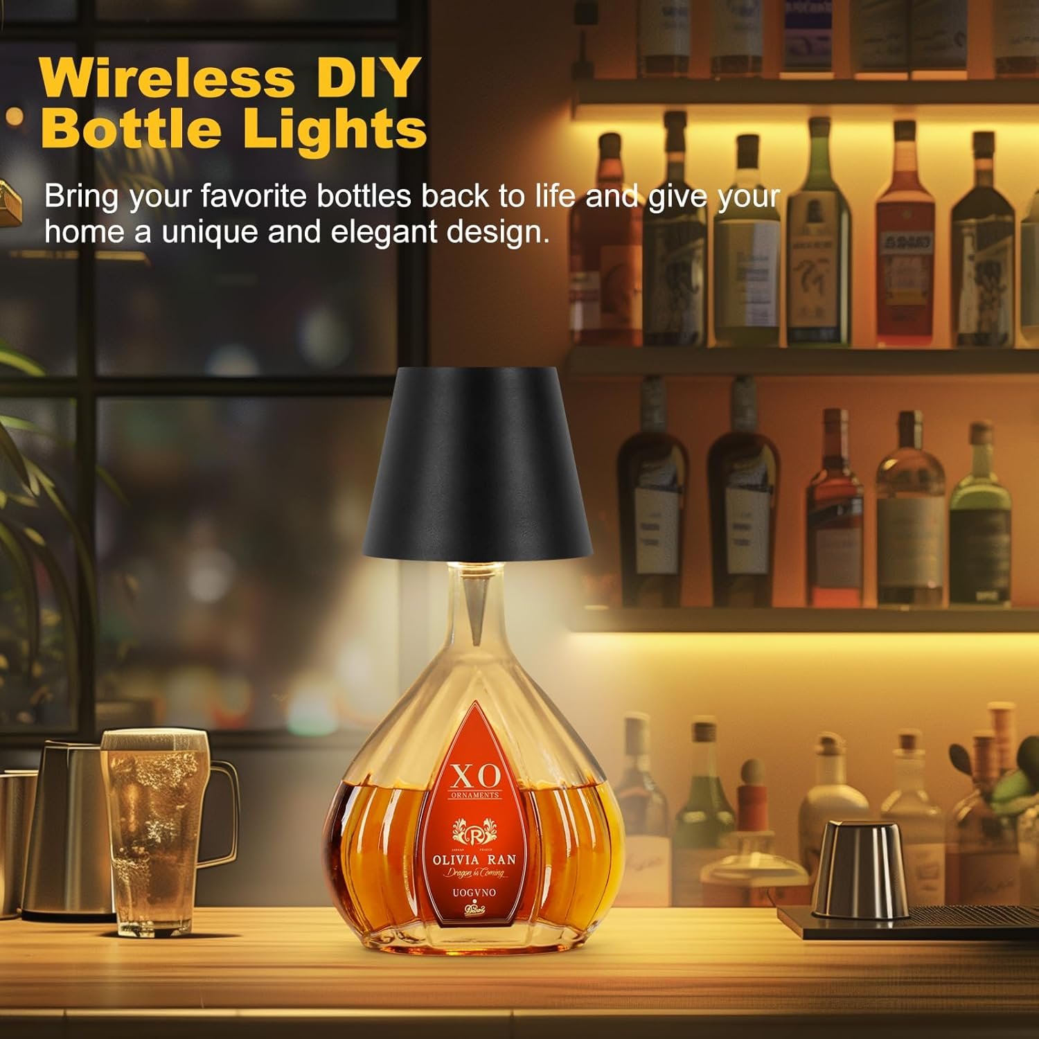 Juego de valor de dos piezas Doble la creatividad Este juego incluye 2 lámparas de botella inalámbricas, permitiéndote decorar múltiples espacios o crear un ambiente de iluminación cohesivo. Ideal para amantes del vino, decoradores de interiores o cualquier persona que busque reciclar botellas vacías en luces únicas. Perfecto para fiestas, cenas o ambiente cotidiano Control táctil con 3 modos de luz y atenuación sin escalones Cambia fácilmente entre blanco cálido, blanco natural y blanco frío con un toque. Pulsa durante mucho tiempo para ajustar el brillo suavemente del 5% al 100%. Ya sea que estés leyendo, relajándote o estableciendo el estado de ánimo, esta lámpara ofrece iluminación personalizable al alcance de tu mano Recargable e inalámbrica: batería de 3600 mAh Cada lámpara está alimentada por una batería recargable integrada de 3600 mAh para 6 a 24 horas de uso inalámbrico. Recarga a través de USB-C en solo 2,5 horas. Sin cables, sin complicaciones: colócalo donde quieras: mesa de comedor, estante o al aire libre Se adapta a todas las botellas Haz tu propia base de lámpara Viene con un adaptador de silicona flexible para adaptarse a la mayoría de botellas de vino, licor y refrescos. Ya sea un centro de mesa de botella de whisky o una botella de champán reutilizada, puedes crear tu propia lámpara única con facilidad Regalo único para el Día del Padre, elegante y funcional: este paquete de 2 lámparas inalámbricas para botella de licor es una idea de regalo única para el Día del Padre que añade un toque de elegancia a cualquier entorno, ya sea un dormitorio acogedor, una mesa romántica de cena o un patio al aire libre. Con protección impermeable IP54, es perfecto para papás que aprecian la buena iluminación y el buen gusto. Ideal para inauguraciones de casa, cumpleaños o cualquier momento especial que valga la pena celebrar