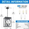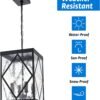 Diseño retro: la lámpara colgante de linterna para exteriores tiene un estilo de granja gracias al portalámparas retro en forma de vela y al marco de metal acabado en negro mate. La cubierta de vidrio ondulado de agua de la lámpara colgante exterior crea hermosas ondas en la luz, llevando el efecto de iluminación a un nivel completamente nuevo en comparación con el vidrio ordinario IP44 resistente a la intemperie: El material resistente a la intemperie duradero aplicado hace que la luz colgante sea anticorrosión y antioxidante. Esta lámpara colgante exterior está diseñada para soportar todo tipo de condiciones climáticas adversas. Se puede utilizar en aplicaciones al aire libre con exposición a la luz solar directa, la lluvia y la nieve. Bombillas estándar E12: 4 luces colgantes compatibles con LED, CFL y otras bombillas de base media estándar E12 (hasta 40W, bombillas no incluidas). También es regulable cuando utilizas las bombillas regulables y el interruptor de atenuación (no incluidos), disfruta del brillo y la atmósfera que te gusta. Amplias aplicaciones: esta linterna colgante exterior con su diseño clásico y funcionalidad práctica proporciona perfectamente una hermosa luz y aspecto decorativo para entrada, puerta, vestíbulo, pasillo, balcón, patio y porche Fácil instalación: se incluyen instrucciones detalladas y accesorios de montaje para una fácil instalación. Si la pantalla de vidrio se rompió en el camino, por favor contáctenos a través