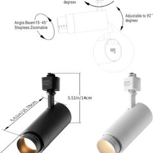 5 colores ajustables: los cabezales de pista LED mirrea ofrecen cinco temperaturas de color para una iluminación versátil. Elige fácilmente entre 2700 K y 5000 K para que coincida con cualquier ajuste. Zoom de 15° a 45°: con un ángulo de haz ajustable de 15° a 45°, estos cabezales LED pasan sin esfuerzo de un foco enfocado a un reflector ancho, lo que los convierte en una opción versátil para la iluminación de la cocina. 10%-100% regulable: con un regulador TRIAC estándar, puede controlar sin problemas la salida de luz del 10% al 100%, pasando su cocina de iluminación vibrante para tareas a un espacio nocturno suavemente iluminado. Fácil de instalar: los cabezales de iluminación LED mirrea de 5 colores regulables de 13.5 W son fáciles de instalar, con ángulos ajustables horizontales de 350° y verticales de 90°. Garantía de 2 años: No UV o IR, seguro para iluminación de cocina y obras de arte.