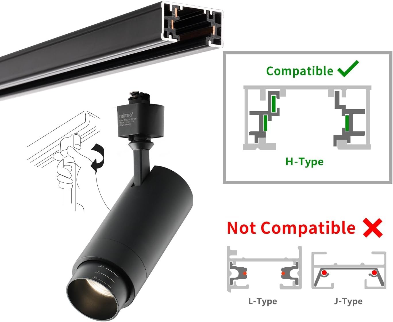 mirrea Cabezales de iluminación de riel negros tipo H con zo