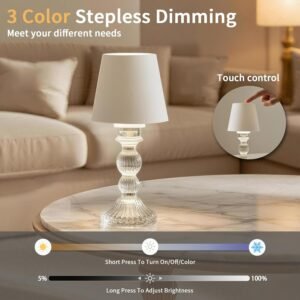Lámpara de mesa inalámbrica: esta lámpara inalámbrica cuenta con un puerto de carga universal tipo C. El controlador táctil en la parte superior te permite ajustar el brillo, cambiar los colores y encender la lámpara fácilmente, ofreciendo una experiencia de iluminación conveniente, perfecto para áreas sin acceso a energía Lámpara de mesa regulable de 3 colores: esta lámpara de mesa recargable ofrece 3 modos de color: luz cálida de 3000 K, luz natural de 4500 K y luz blanca de 5500 K para adaptarse a diferentes entornos. Pulsa para cambiar de color o mantén presionado para atenuar continuamente, creando tu ambiente de iluminación ideal Excelente para usar en diferentes habitaciones: la lámpara funciona con pilas cuenta con una base de cristal transparente única y un elegante cabezal de lámpara de metal esmerilado, que añade elegancia a la decoración de tu hogar. Su pequeño tamaño portátil (11,0 cm de profundidad x 11,0 cm de ancho x 24,0 cm de alto) se adapta perfectamente a cualquier esquina, ideal para emergencias o uso diario Lámpara de mesa inalámbrica recargable: no necesita instalación, lista para usar nada más sacarla de la caja. El pequeño cabezal de lámpara recargable integrado garantiza una larga durabilidad. El indicador de carga muestra rojo mientras se carga y verde cuando está completamente cargado. Incluso cuando está apagado, sirve como una elegante pieza de decoración Calidad y atención al cliente: ideal para mesitas de noche, escritorios, dormitorios, salas de estar, cocinas y comedores, esta lámpara de mesa MJ PREMIER proporciona una iluminación adaptable para cualquier espacio. Respaldado por un soporte de 6 meses, nuestro equipo de servicio al cliente receptivo está disponible 24/7 para ayudar con cualquier consulta dentro de las 12 horas MJ PREMIER: ilumina la vida con amor Durante más de medio siglo, MJ PREMIER ha definido la excelencia en la iluminación decorativa inalámbrica. Como pioneros perdurables en nuestro campo, fusionamos el dominio del diseño original con una pasión inquebrantable por enriquecer los momentos de la vida. Fabricados con atención obsesiva desde la curación de materiales hasta la creación final, ofrecemos una funcionalidad intemporal que cumple con una funcionalidad sin concesiones. Esta dedicación implacable ha iluminado innumerables hogares en más de 56 naciones, iluminando los lazos de amor y recuerdos inolvidables a través del arte de la luz. Elige MJ PREMIER: ilumina espacios preciados, honra momentos preciados y enciende la comodidad para aquellos que más aman, incluido tú mismo