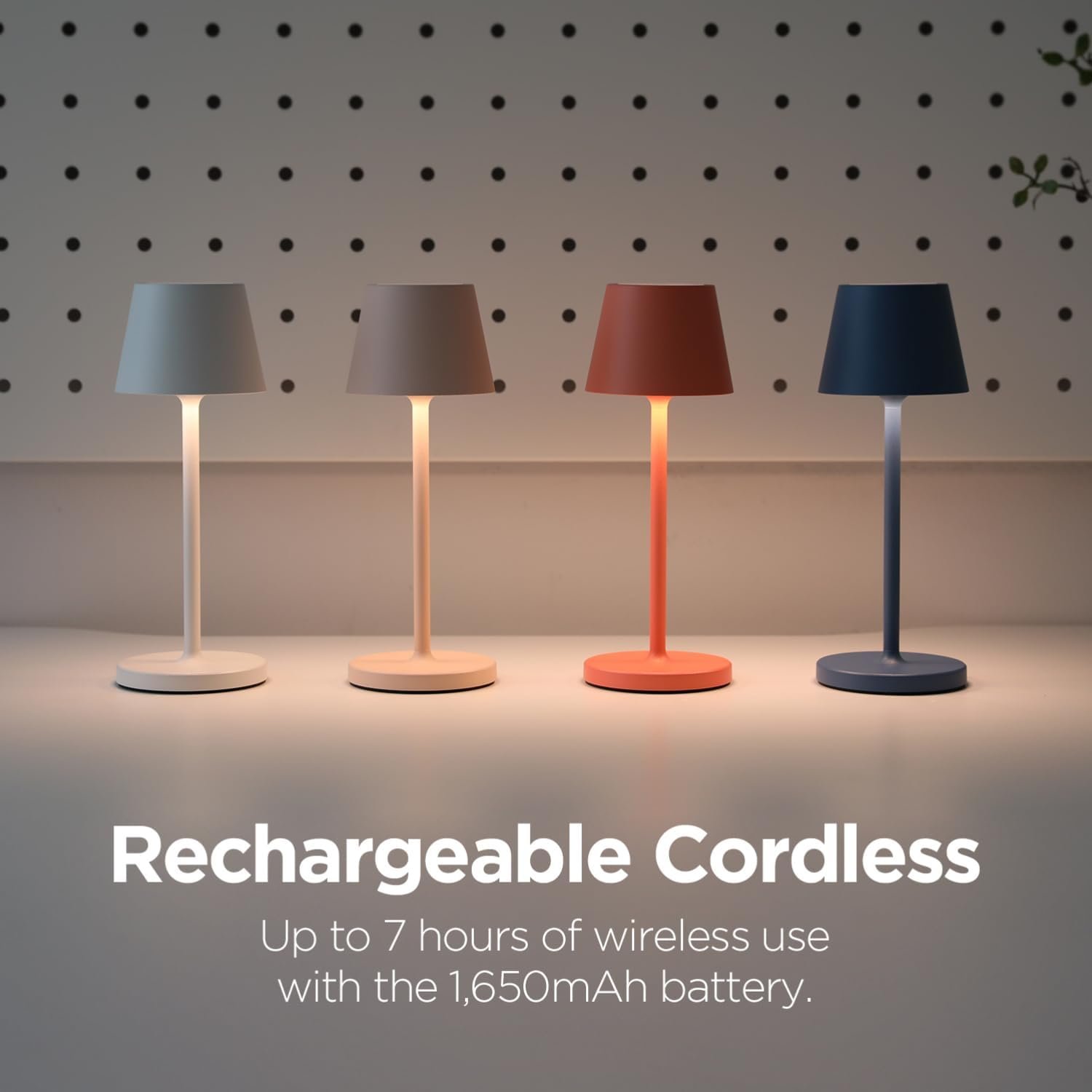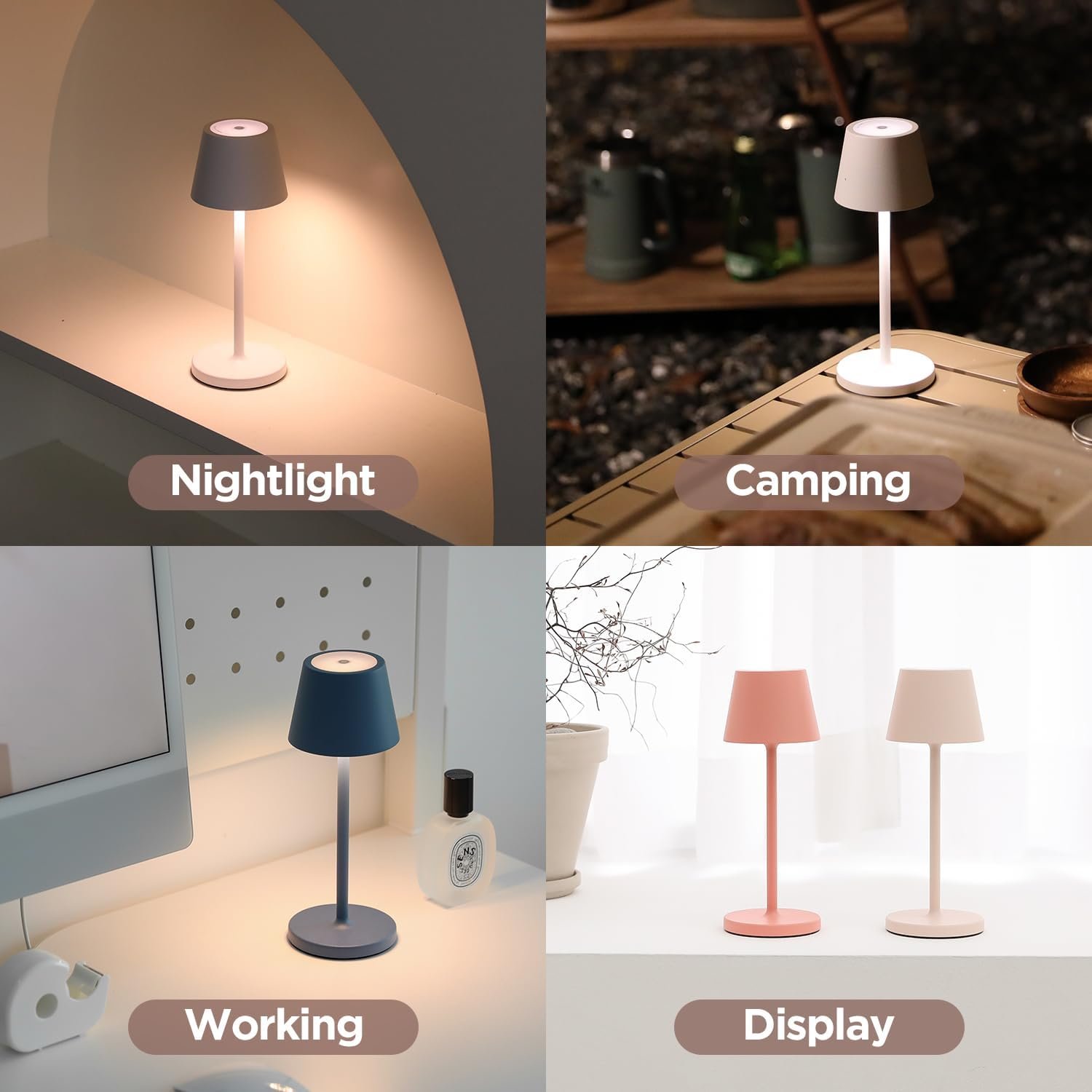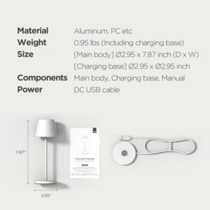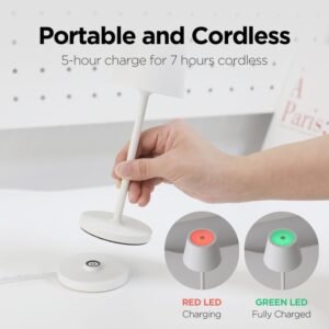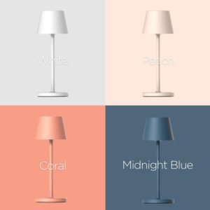 Lámpara de mesa inalámbrica recargable: crea un ambiente acogedor en cualquier lugar con nuestra lámpara inalámbrica. Perfecto para establecer el ambiente en interiores o exteriores. Colócalo en cualquier lugar que desees para lograr el ambiente perfecto para noches relajantes, reuniones acogedoras o sesiones de trabajo productivas. Tamaño: 7,5 cm x 7,5 cm x 20,0 cm. Esta lámpara portátil cuenta con un diseño bonito y compacto, es fácil de llevar, se adapta a cualquier decoración. Base de carga exclusiva: garantiza una fácil recarga con indicadores LED, ofreciendo hasta 7 horas de uso inalámbrico con la batería de 1,650 mAh. Utiliza la función de lámpara de mesa mientras se carga; el LED se vuelve verde cuando está completamente cargado, proporcionando una indicación clara. Independientemente del color de la lámpara, el color de la base de carga es blanco. Durabilidad y portabilidad: Nuestra lámpara de mesa cuenta con una construcción de aluminio fundido a presión premium, lo que garantiza una resistencia sólida, portabilidad ligera y estabilidad segura. Además, las almohadillas antideslizantes en la parte inferior proporcionan mayor estabilidad durante el uso. Controles de brillo: Personaliza tu ambiente con facilidad utilizando nuestra función de brillo ajustable y tres opciones de color. Elige entre luz cálida (2200 K) para un brillo acogedor, luz blanca cálida (2700 K) para un ambiente acogedor y luz blanca (3000 K) para un brillo refrescante. Colección Premium Matte 4 Colores: Eleva tu espacio con nuestra colección exclusiva que ofrece simplicidad moderna en cmBlanco cm, ambiente suave con cmMelocotón cm, energía vibrante con cmCoral cm y vibraciones reconfortantes con cmMidnight Blue cm Controles táctiles sin fisuras y función de memoria inteligente: controla instantáneamente tu iluminación con botones fáciles de tocar. Pulsa brevemente para encender/apagar, pulsa larga para ajustar el brillo. Disfruta de nuestra función de memoria inteligente, que guarda tus ajustes anteriores, eliminando la necesidad de reajuste cada vez. Uso versátil: esta moderna y elegante iluminación ambiental sirve como la pieza central del ambiente en dormitorios, salas de estar, escritorios, cafeterías, oficinas, sitios de camping y fiestas, funcionando como luz de lectura, luz de lactancia, luz de estado de ánimo y luz de noche para diversas necesidades.