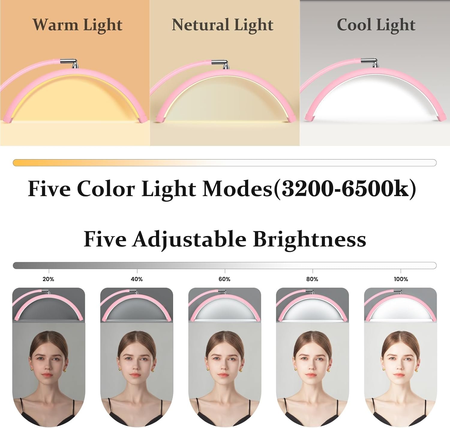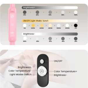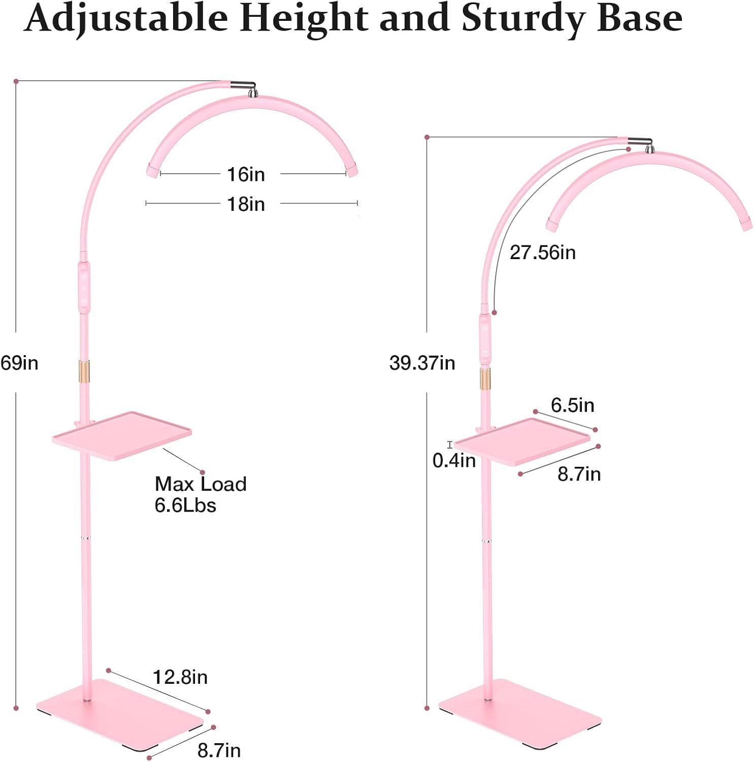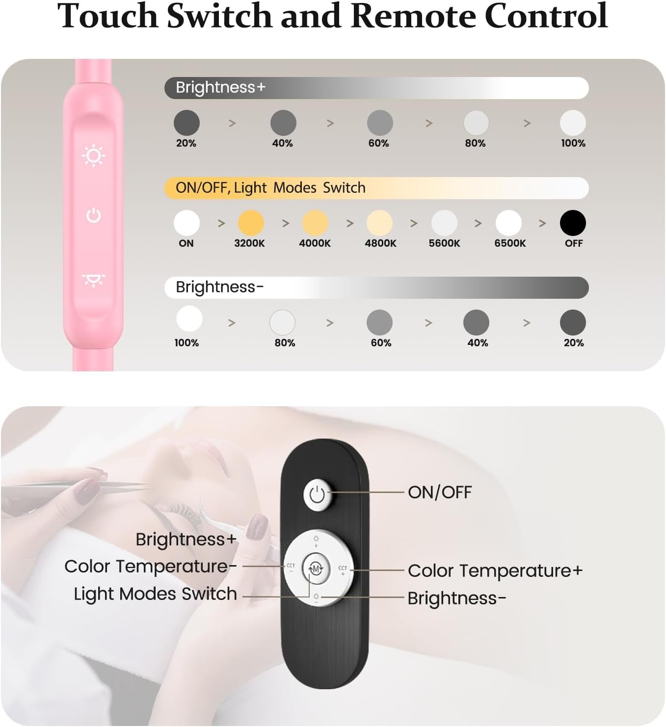 Luz de pestañas profesional para piso: la lámpara de pestañas Mznoo es una iluminación ideal para estudios de belleza como extensiones de pestañas, arte de uñas y arte del tatuaje. Puede ajustar el tono de luz de cálido a frío (3200k a 6500k) y ajustar el brillo de 0% a 100%, puedes elegir el modo de luz perfecto para satisfacer tus necesidades. Iluminación sin sombras: el diseño de media luna puede eliminar sombras y puntos ciegos, y el índice de reproducción cromática de la lámpara de pestañas es superior a 95, lo que hace que su área de trabajo sea más clara, lo que facilita el funcionamiento de tatuajes de cejas y extensiones de pestañas. Uso multiángulo: el cabezal de la lámpara se puede ajustar 180 grados verticalmente y 320 grados horizontalmente. Además, el brazo de la lámpara se puede doblar en cualquier ángulo. La lámpara de pestañas Mznoo es muy flexible y conveniente para profesionales y esteticistas. Dos métodos de control y una práctica bandeja de herramientas: la lámpara de pestañas Mznoo se puede controlar con el control remoto y el interruptor táctil incorporado. Tiene 5 temperaturas de color y 5 niveles de brillo. Puedes ajustar la luz de acuerdo a diferentes escenas. Viene con una bandeja de almacenamiento de herramientas, simplemente atornilla en el poste de luz, muy conveniente para colocar objetos pequeños en él. Altura ajustable y base resistente: la altura de la lámpara de pestañas se puede ajustar de 100,0 cm a 175,3 cm, y la longitud del brazo de la lámpara es de 70,0 cm, que es la altura ideal para técnicas de pestañas. La base de metal es lo suficientemente ancha para que la lámpara de pestañas se mantenga estable.