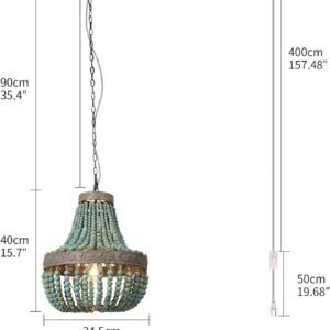 Ya unimos las cuentas y la colgamos en la lámpara, necesita un montaje parcial Una capa de cal en la superficie de las cuentas, puede ser resistente a altas temperaturas, evitar que las cuentas de madera se quemen Tamaño grande, 50,5 cm de diámetro por 55,0 cm de altura, Cadena/cordón ajustable de 100,0 cm de longitud, Adecuado para mesa de comedor de 8-12 asientos E26 Max 3*60 W, se pueden usar bombillas incandescentes, LED, CFL y halógenas (bombilla no incluida). Se recomiendan bombillas incandescentes, pueden crear un bonito efecto de iluminación Listado ETL