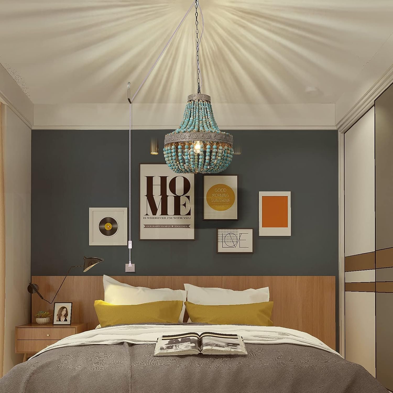 Características especiales: Mini lámpara de techo colgante de cuentas de madera bohemia bohemia rústica