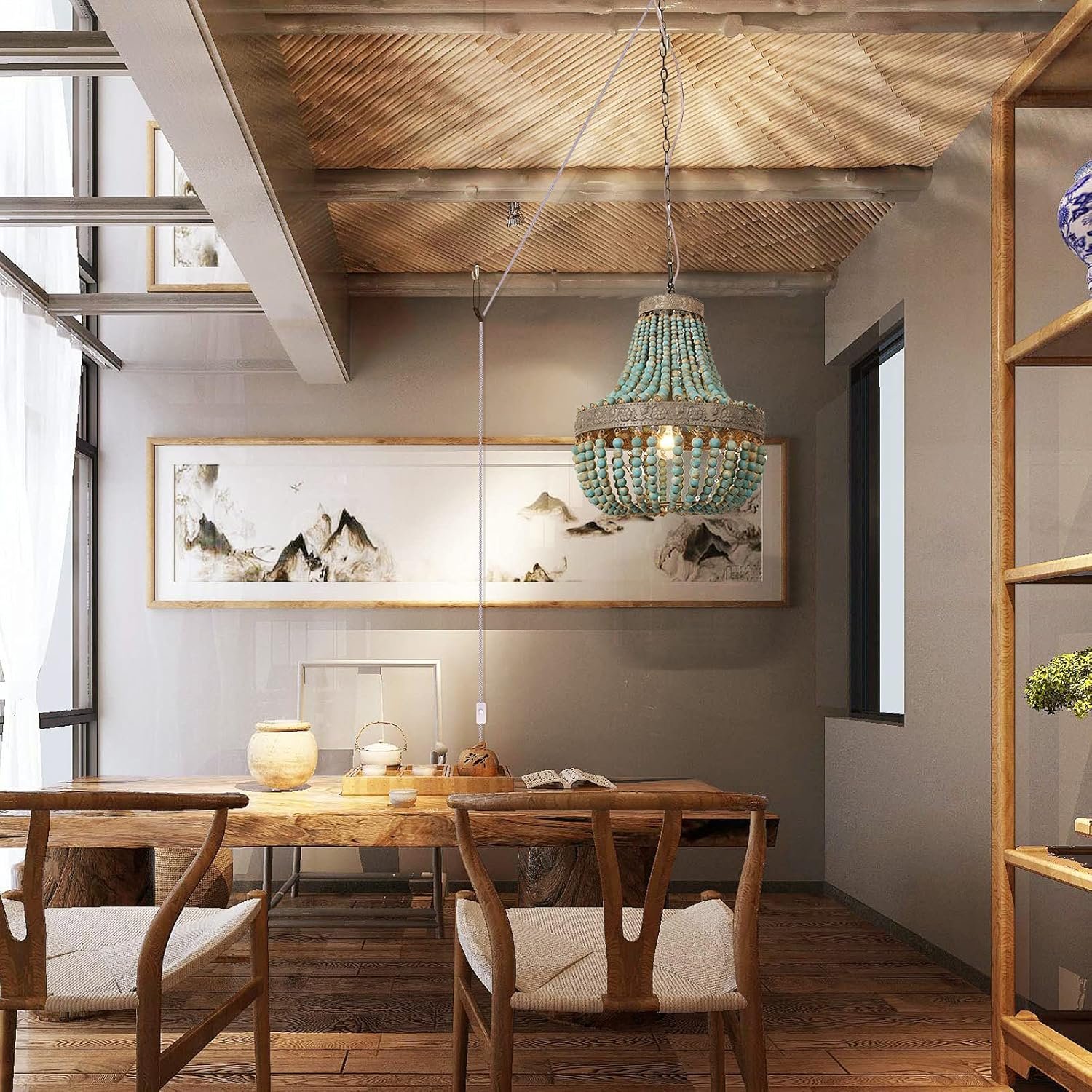 Newrays Lámpara de techo con cuentas de madera estilo bohemi