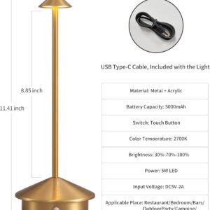 Portátil inalámbrico: el práctico diseño inalámbrico elimina el problema de los cables enredados, se puede colocar donde necesites utilizarlo, y la forma es de tamaño moderado, no ocupa espacio visual. Su diseño simple y elegante puede hacer que su residencia sea más de buen gusto. Ideal para usar mientras se lee, trabaja, estudia o descansa, se puede colocar en la mesa de comedor, dormitorio, sala de estar, mesita de noche, patio, bar, camping y otros lugares, decoración del hogar. Funciona con pilas: batería recargable integrada de 5000 mAh, el tiempo de carga es de 4 a 6 horas, en el estado más brillante se puede utilizar alrededor de 8 a 24 horas, el estado más oscuro se puede utilizar alrededor de 24 a 40 horas. Luz roja cuando se carga, luz verde cuando está completamente cargada. Colocado junto a tu cama, puedes usarlo cuando te levantes en la noche y te dará suficiente luz sin molestar. O úsalo como fuente de luz de emergencia cuando se corte la energía. 3 niveles de brillo: esta lámpara de mesa está diseñada con un práctico interruptor táctil, y puedes cambiar el modo de luz con un toque ligero. Temperatura de color: 2700K. Puedes ajustar el brillo que necesitas de acuerdo al entorno en el que te encuentres. Esta lámpara puede satisfacer tus diferentes necesidades de iluminación y crear una experiencia de iluminación exclusiva para ti. Material de metal El cuerpo de la lámpara está hecho de metal, la capa superficial está pintada para evitar cortes y corrosión. Lámpara de mesa dorada / plateada con superficie que utiliza el proceso de galvanoplastia para crear una textura suave y delicada. La pantalla de la lámpara está hecha de material plástico, tiene buena transmisión de luz y no daña los ojos, la luz transmitida es más suave. La base está equipada con almohadillas antideslizantes para evitar que se vuelque accidentalmente, y se puede utilizar tanto en interiores como en exteriores. Servicio posventa Lámpara de mesa LED moderna, diseño de moda, material grueso, práctico y decorativo. Si encuentras algún problema durante el uso, ponte en contacto con nosotros, estamos encantados de resolverlos por ti.