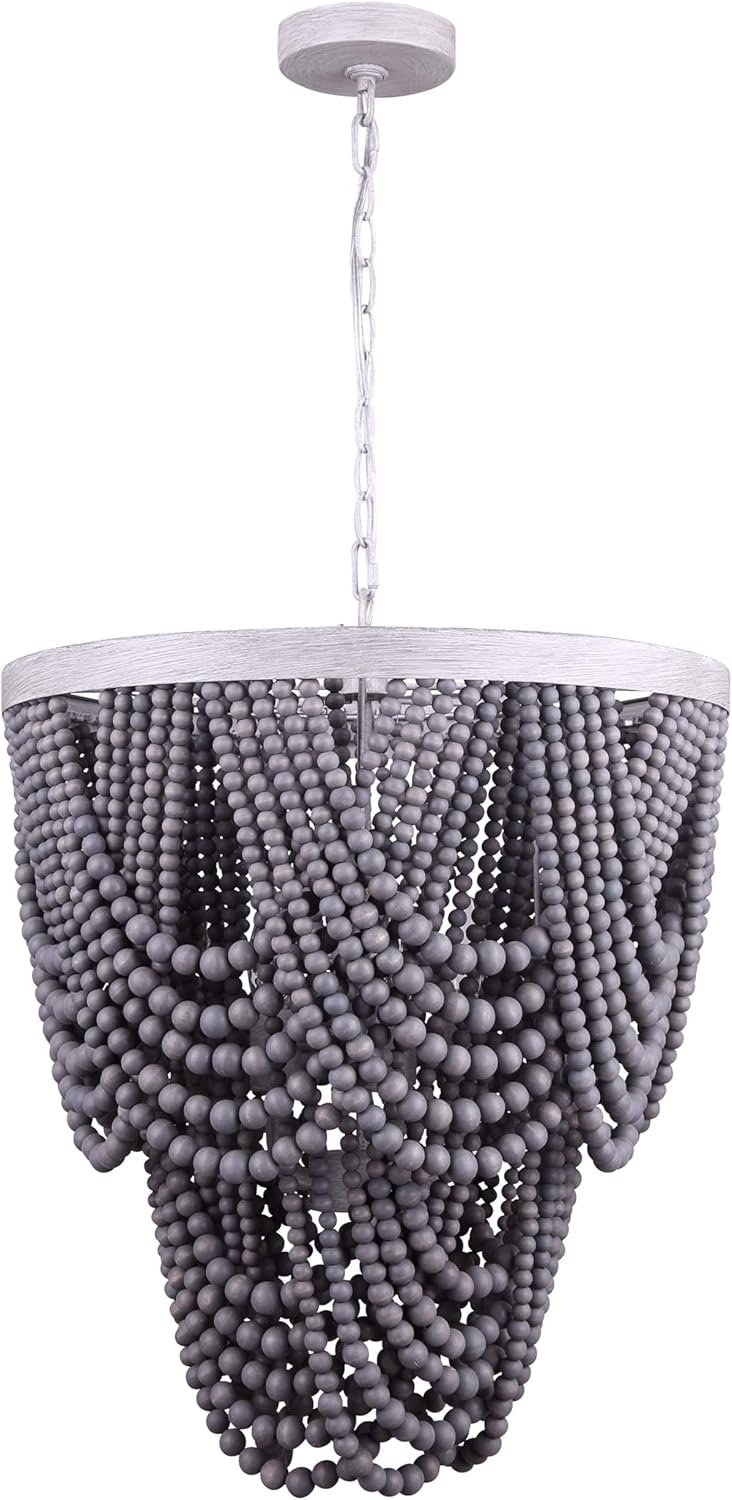 Detalles: Acabado gris cepillado, Candelabra Style Design, Cuentas de madera gris