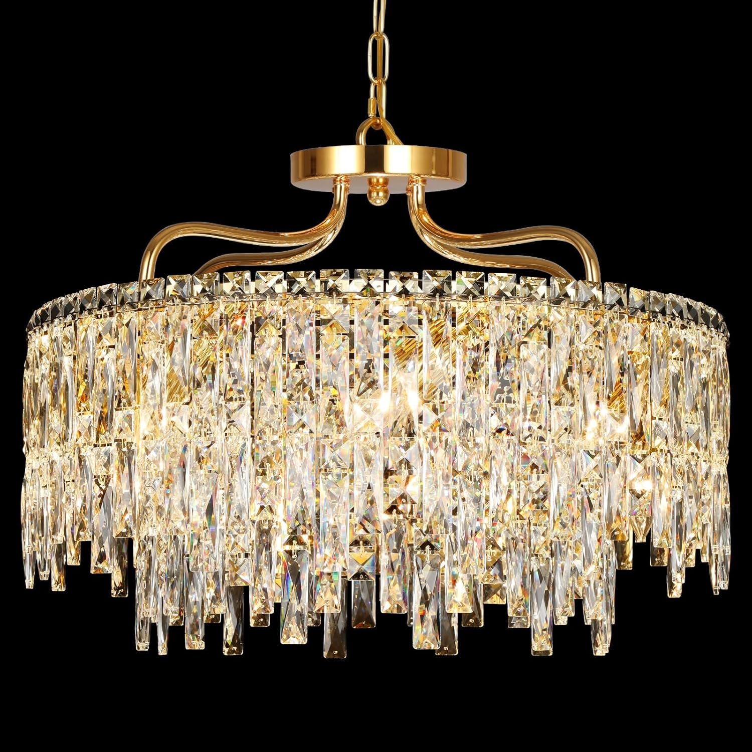 CANDELABRO DE CRISTAL DE LUJO – ELEGANTE REDEFINIDO: Candelabros de cristal hechos a mano con diseño de prisma multidimensional crean deslumbrantes efectos de luz arco iris. Perfecto para elevar comedores, espacios de estar e interiores de lujo con una elegancia sin igual. PARÁMETROS DE TAMAÑO: Las lámparas de comedor sobre la mesa miden 61,0 cm de diámetro y 43,2 cm de altura con una cadena colgante de 129,5 cm, y la altura es ajustable de 53,3 cm a 147,3 cm, por lo que puedes adaptar la altura adecuada para tu espacio. Elegante candelabro de cristal: cuando se enciende la elegante lámpara de araña de cristal dorado, su brillo crea un ambiente familiar cálido y acogedor. Incluso sin estar encendido, el candelabro de cristal, como una elegante decoración central colgante, es inolvidable. REGULABLE Y COMPATIBLE CON BOMBILLAS: Este candelabro moderno incluye una función de atenuación, pero solo si utiliza tanto un interruptor regulable como una bombilla regulable (no incluidas). Estos candelabros se adaptan a todas las bombillas E12, se recomiendan bombillas LED, Edison, incandescentes y halógenas (bombillas no incluidas) Fácil de instalar: esta moderna lámpara de araña de cristal es fácil de instalar, viene con instrucciones de instalación detalladas y todos los accesorios necesarios, los cristales están construidos con broches para que puedas colgar rápidamente todos los cristales en menos de 15 minutos. Ampliamente utilizado: este gran candelabro redondo para comedor proporciona una amplia iluminación para varios espacios, incluyendo salas de estar, dormitorios, islas de cocina, entradas y mucho más.