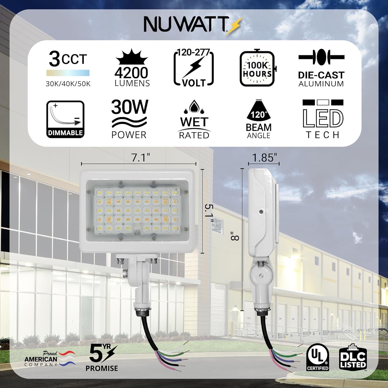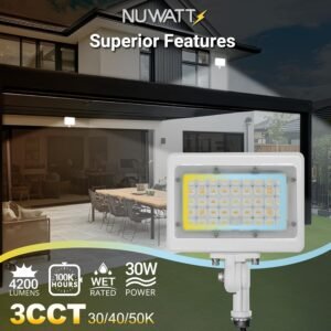 NUWATT Luz de inundación LED de 30 W, 3CCT 3000K/4000K/5000K
