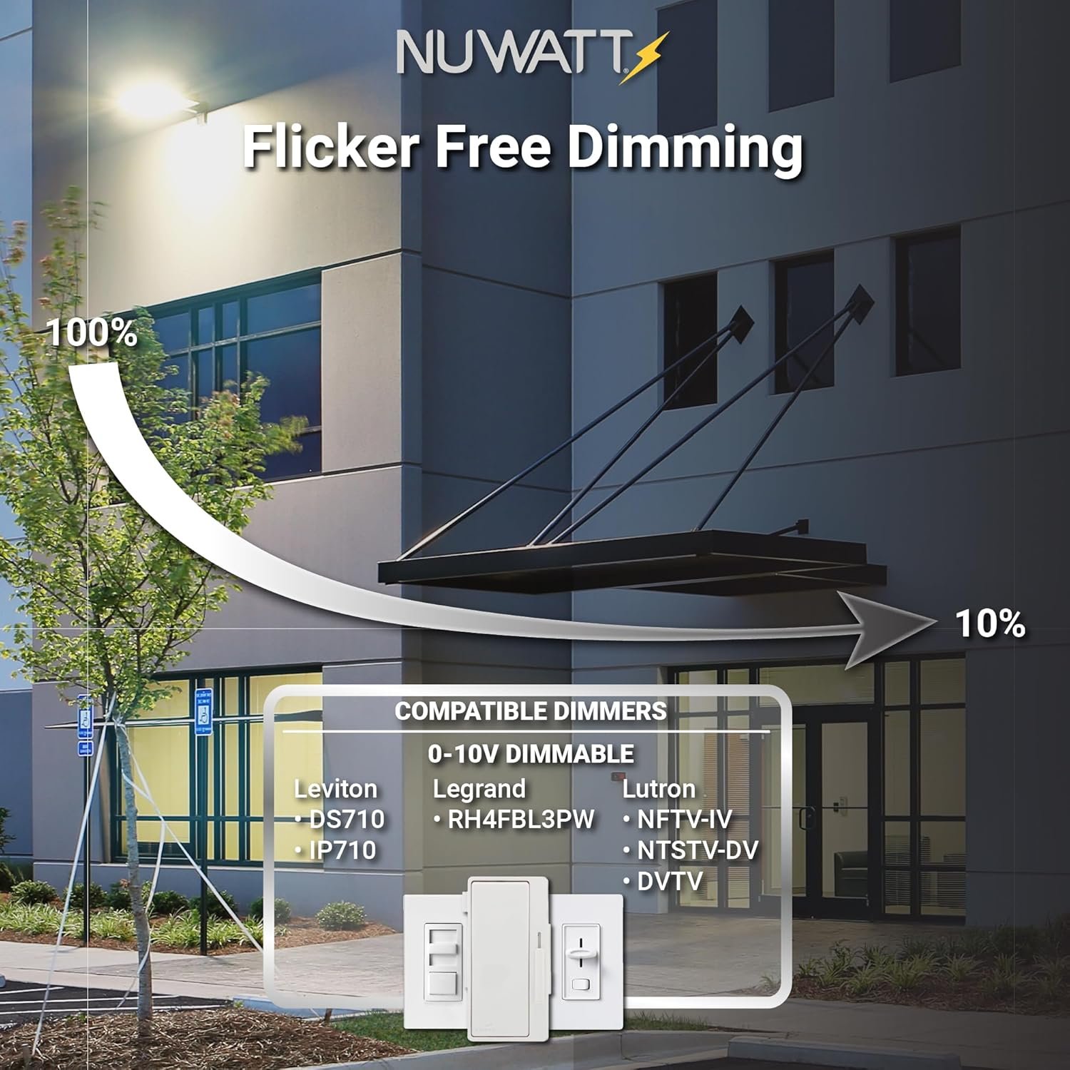 Montaje en nudillos ajustable de 1/5,1 cm: el reflector LED de montaje en nudillos de 1/5,1 cm de NuWatt proporciona una instalación sin esfuerzo y un rango de movimiento de 180 grados, lo que le permite dirigir con precisión la luz a cualquier lugar. Ya sea que estés iluminando un camino de entrada o mejorando la seguridad alrededor de tu hogar, estos reflectores ajustables de montaje en nudillos resistentes con dientes de bloqueo garantizan que la luz se mantenga colocada de forma segura, mientras que el diseño universal permite una instalación sin esfuerzo en techos, pisos, mástiles, paredes y cubiertas sin necesidad de herramientas especializadas. 3 temperaturas que cambian de color seleccionables: puedes lograr más con esta luz de inundación que cambia de color. Nuwatt te permite personalizar tu entorno exterior con 3 temperaturas de color seleccionables, todo con solo tocar un interruptor. Simplemente cambia entre tres temperaturas de color: blanco cálido 3000K, blanco frío 4000K o blanco brillante 5000K, todo en una sola luz de inundación resistente a la intemperie. Ya sea que necesites un brillo acogedor para las luces exteriores de tu casa, o la claridad y el detalle de una luz de seguridad exterior de 5000 K. Personaliza la temperatura de la luz según tus preferencias con las luces de inundación Nuwatt 3CCT. CALIFICACIÓN DE RESISTENCIA AL AGUA IP65: Vence cualquier clima con las luces de inundación libres de corrosión con clasificación IP65 de NuWatt. Desde la lluvia y la nieve hasta el sol abrasador, su carcasa duradera de aluminio fundido garantiza durabilidad durante todo el año. Ya sea tu patio trasero, patio o tus luces de seguridad alrededor de tu almacén, estos reflectores LED impermeables ofrecen un rendimiento confiable, respaldado por una vida útil de 100.000 horas. Además, su amplia gama de aplicaciones se extiende más allá de los espacios exteriores típicos; su capacidad para manejar lugares húmedos y mojados los hace adecuados para áreas rurales, graneros e incluso lavaderos de autos. APLICACIONES: Construido para durar, la carcasa de aluminio fundido a presión impermeable IP65 de los reflectores LED para exteriores de Nuwatt lo convierte en una opción confiable para cualquier ubicación al aire libre. Desde iluminar exteriores de edificios y paisajes hasta mejorar la seguridad alrededor de jardines y piscinas, este reflector LED impermeable brilla intensamente durante todo el año. Incluso los entornos interiores como graneros, talleres y fábricas pueden beneficiarse de su reflector ultra brillante de 4200 lúmenes. Respaldadas por una garantía de 5 años, las luces de inundación LED a prueba de óxido de Nuwatt ofrecen una solución confiable y duradera para todas sus necesidades de iluminación interior y exterior. Ultra brillante: las luces LED de inundación Nuwatt ofrecen un brillo excepcionalmente alto, iluminando eficazmente tu entorno para mejorar la visibilidad nocturna. Con una alta salida de 4200 lúmenes emitida por este brillante foco de luz para exteriores, proporciona una iluminación de seguridad confiable con un amplio ángulo de haz de 150 grados. Ideal para áreas que requieren altos niveles de brillo como estacionamientos, iluminación de paisajes, fachadas de edificios o eventos al aire libre. RANGO DE VOLTAJE UNIVERSAL: Estas luces de inundación de grado comercial son compatibles con sistemas eléctricos residenciales (120V) y comerciales (277V). Esto elimina las preocupaciones de compatibilidad, simplificando la planificación del proyecto y reduciendo la necesidad de almacenar diferentes reflectores para diferentes trabajos. Los proyectores LED universales ofrecen adaptabilidad, facilidad de uso y menor potencial de errores en comparación con los accesorios de iluminación de inundación no universales. Agilizan proyectos, ahorran tiempo y reducen costos, lo que los convierte en una opción superior para una gama de aplicaciones de iluminación exterior. Regulable de 0 a 10 V: las luces de inundación LED regulables Nuwatt ofrecen ventajas significativas sobre las opciones no regulables. Proporcionan un control preciso de iluminación exterior, una eficiencia energética mejorada y materiales duraderos y resistentes para sobrevivir a todas las aplicaciones al aire libre. A diferencia de las luces de inundación no regulables, que solo ofrecen modos de encendido/apagado, la regulación de 0-10 V de nuestras luces de inundación exteriores permite un control preciso sobre la intensidad de la luz. Crea un ambiente suave para noches relajantes o aumenta el brillo para una visibilidad clara. Certificado UL cUL: Con nuestro listado DLC y UL cUL, garantizamos calidad y operación segura. Además, la protección impermeable IP65 y la construcción de aluminio fundido a presión proporcionan una excelente resistencia a la corrosión y disipación de calor. Con una carcasa térmicamente eficiente, nuestros proyectores UL ofrecen un rendimiento duradero, respaldado por una garantía de 5 años. VENTAJA DE NUWATT: Un proveedor de iluminación LED confiable y de propiedad familiar con sede en los Estados Unidos, NuWatt se destaca con productos premium, una garantía integral de 5 años y un soporte al cliente inquebrantable para una experiencia sin complicaciones. Nuestra gama incluye soluciones energéticamente eficientes para iluminación comercial, residencial e industrial, iluminando el camino hacia un futuro más brillante.