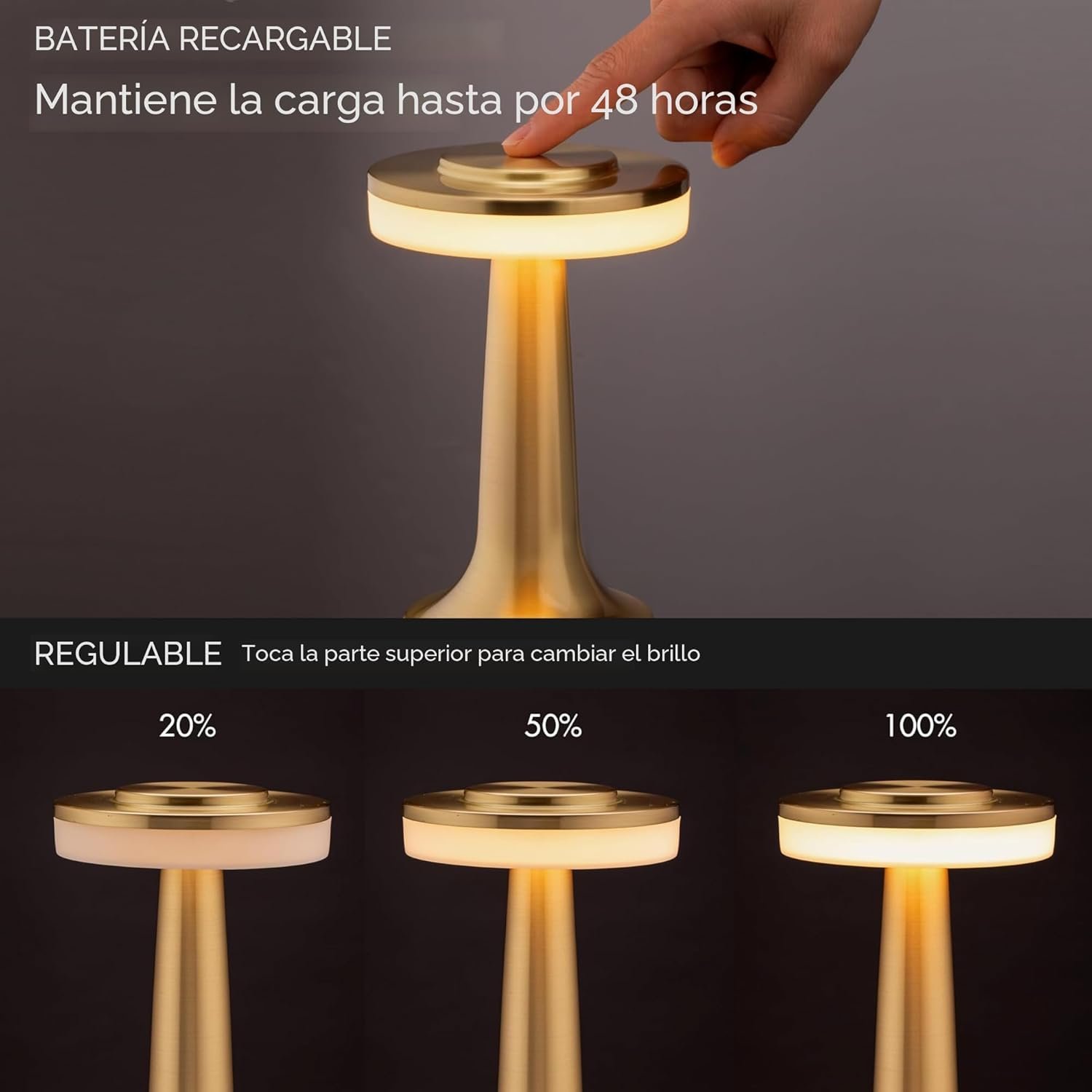 Características especiales: Regulable, portátil, recargable, inalámbrico