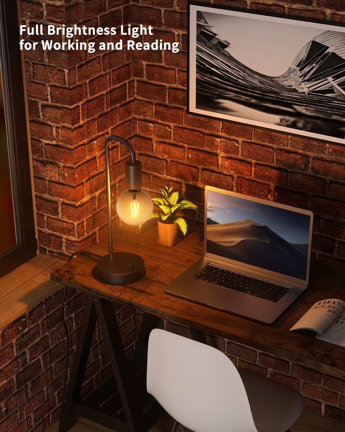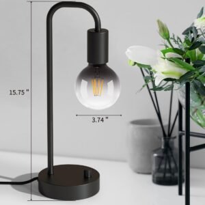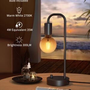 Lámpara de mesa de metal con atenuación continua: con un interruptor de atenuación de giro suave, puedes ajustar fácilmente el brillo del 0% al 100%. Haz que la iluminación de la lámpara de escritorio se adapte a tus necesidades. Por ejemplo, cambia fácilmente de luz nocturna a lámpara de lectura. Esta lámpara de mesita de noche es el reemplazo perfecto para la lámpara táctil. Tendrás más configuraciones de brillo y evitarás la molestia de los sensores táctiles Bombilla LED Edison incluida Nuestras lámparas de dormitorio estilo globo están equipadas con una bombilla LED regulable E26. 4W (equivalente a 35W), luz natural suave con 200 lúmenes, sin parpadeo de brillo, sin deslumbramiento, mejor protección para tus ojos. 25.000 horas de vida útil y 90% de ahorro de energía para ahorrar dinero Diseño industrial y minimalista Esta moderna lámpara de mesa cuenta con una base pesada redonda y un poste de metal negro mate, lo que la hace estable y duradera. El diseño minimalista hace que sea elegante para la decoración del hogar. Se mezcla fácilmente con interiores vintage o modernos Lámpara de mesita retro para decoración del hogar y regalo La iluminación ambiental cálida de esta pequeña lámpara de mesa crea una atmósfera acogedora que encaja perfectamente en un dormitorio, sala de estar, estudio, habitación de invitados, habitación de niños, oficina, dormitorio, etc. Impresiona a tus seres queridos con un regalo que combina belleza y practicidad para tu familia, amigos o colegas. Protección confiable y fácil instalación: disfruta de la tranquilidad con nuestra excelente protección de 1 año. Si encuentras algún problema con nuestras lámparas para mesita de noche, no dudes en decírnoslo y nos comunicaremos con usted rápidamente en un plazo de 24 horas. Solo tienes que instalar la bombilla para utilizar la lámpara de mesa sin necesidad de herramientas.