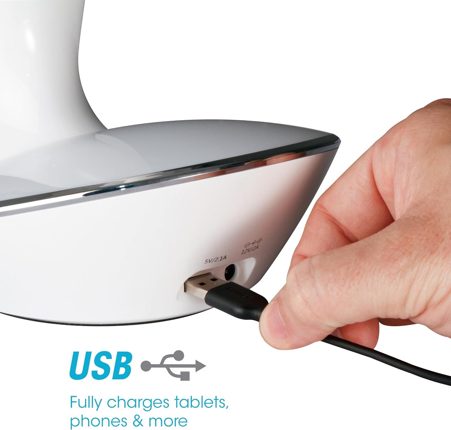 Beneficios del producto: proporciona una iluminación clara y ajustable con base que cambia de color y carga USB