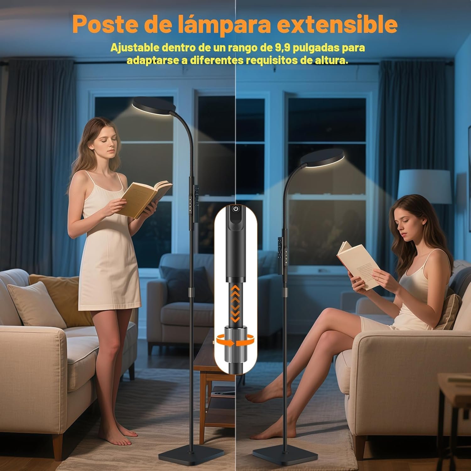 PACOVY Lámpara de pie de altura ajustable para sala de estar