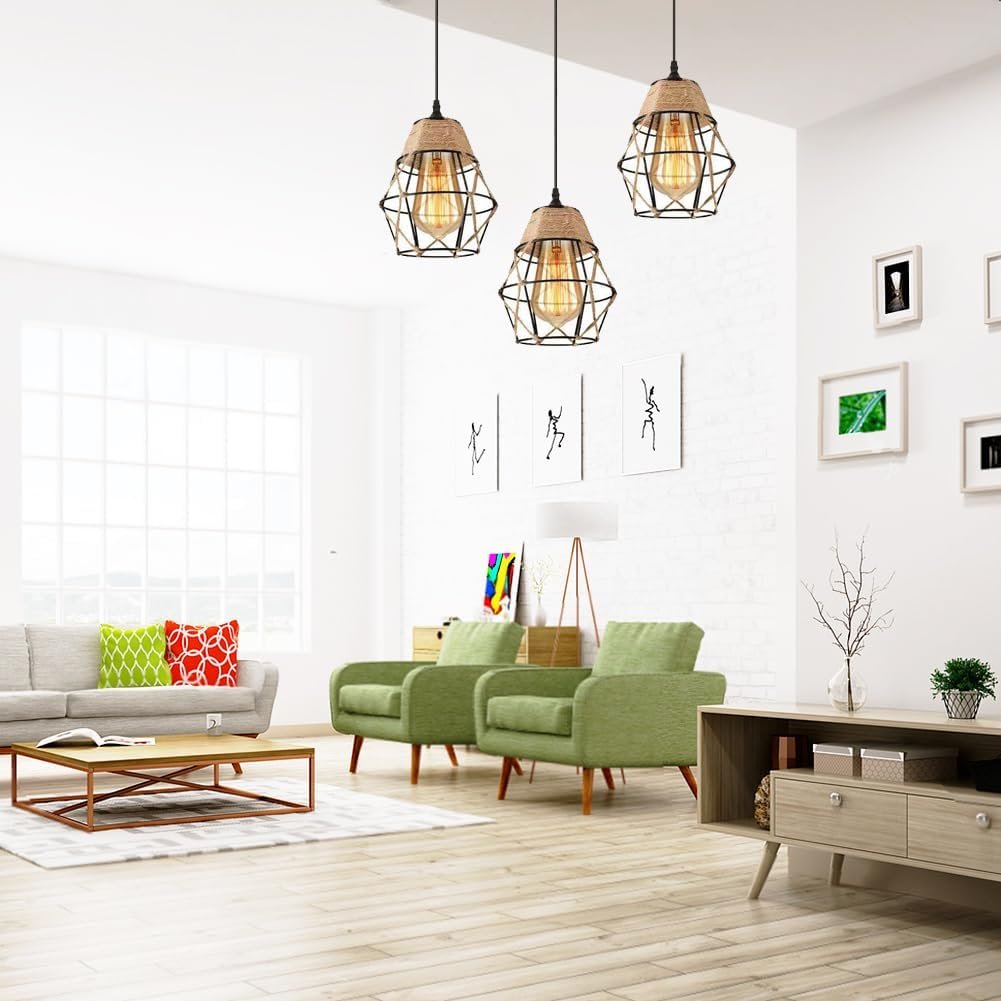 Paquete de 3 pantallas de lámpara colgante de cuerda de cáña