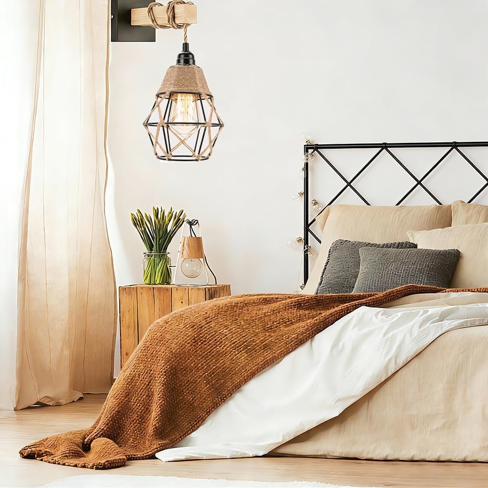 Características especiales: Cuerda de cáñamo tejida a mano y diseño rústico de jaula de metal