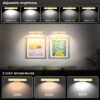 Paquete de 4 luces de fotos alimentadas por baterías: la luz del marco de fotos funciona con 3 pilas AAA (no incluidas), viene con 8 luces LED superbrillantes para un efecto general más brillante. Luz de pintura con control remoto: la luz de pintura LED tiene dos controles remotos, puedes encender/apagar, cambiar la temperatura de color, ajustar el brillo y ajustar el temporizador. [Luz artística con función de temporizador] Ajusta tus luces de exhibición de arte para que se apaguen automáticamente con nuestra función de temporizador. Perfecto para rutinas a la hora de dormir, conservación de energía, etc. [Ocasiones] Decoración del hogar: Perfecto para mejorar el atractivo estético de salas de estar, dormitorios, pasillos, escaleras o cualquier habitación de la casa donde quieras añadir un toque de sofisticación y ambiente. Además, la luz con batería para cuadros es una buena opción para galerías, oficinas, bibliotecas, etc. Lámpara de Pared Inalámbrica No necesita herramientas, sin cableado requerido, instálela donde quiera con tornillos.