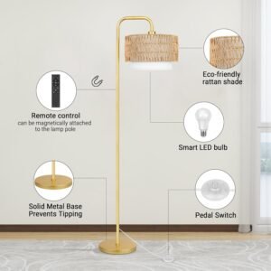Decoración elegante: la lámpara de pie viene con 2 pantallas extraíbles, una pantalla de ratán 100% tejida a mano y una pantalla de tela de lino. Su diseño rústico y contemporáneo complementa sin esfuerzo varios estilos de decoración, añadiendo un toque de sofisticación a tu espacio. El diseño 2 en 1 de ratán y tela no solo proporciona una iluminación excepcional, sino que también sirve como un elegante centro de mesa en cualquier habitación, ya sea que lo coloques en la sala de estar, dormitorio, oficina o cualquier otra área, creará un ambiente cómodo. Compatible con interruptor de pie de pedal y control remoto: la lámpara de pie de granja se controla mediante un interruptor de pie de pedal y un cable de alimentación de 6 pies, permite que tu pie lo toque y el soporte de cable de alimentación largo para colocar la lámpara de pie boho en la posición adecuada. Para mantener el ritmo de los estilos de vida inteligentes, esta lámpara de sala también viene con control remoto (pilas AA no incluidas) para cambiar la temperatura de color y modos de iluminación diversificados. Disfruta de una experiencia más inteligente en la vida, también una gran opción para regalos cálidos Color ajustable y regulable continuo: hemos ofrecido una bombilla LED de 8 W que tiene un alto brillo de 1000 lm que puede iluminar cualquier lugar oscuro fácilmente. La lámpara de pie cuenta con 3 temperaturas de color, un total de 6 niveles de luz que son de 3000 K-6500 K, también incluye 5 modos de luz de escena. Disfruta de una noche acogedora con las familias con luz de 3000 K, 4000 K para la vida diaria, mientras que 5000K-6500K es perfecto para leer o trabajar. La lámpara de pie para dormitorio también incluye función de temporizador de 1 hora para dormir añadiendo comodidad. Material de metal resistente y base pesada: para garantizar la estabilidad y evitar que se vuelque o se caiga accidentalmente, nuestras lámparas de pie para sala de estar con base redonda de sobrepeso hechas de hierro fundido proporcionan una base estable y no es fácil de volcar en colisión. No se tambalea, no se inclina, nunca se cae. Seguro para niños y mascotas. Construido con metal de primera calidad y exquisito Fácil de instalar y compra sin preocupaciones: el paso de instalación es claro y conciso, solo necesita atornillar varias piezas de poste y luego atornillar la pantalla para terminar. Y nos comprometemos a proporcionar un servicio de calidad de 24 meses para ofrecerte una experiencia de compra de gran valor. Si hay algún problema de calidad, no dudes en ponerte en contacto con nosotros a través del cuadro de mensaje de Amazon o el correo electrónico en el manual. Haremos las cosas bien para usted dentro de las 24 horas.