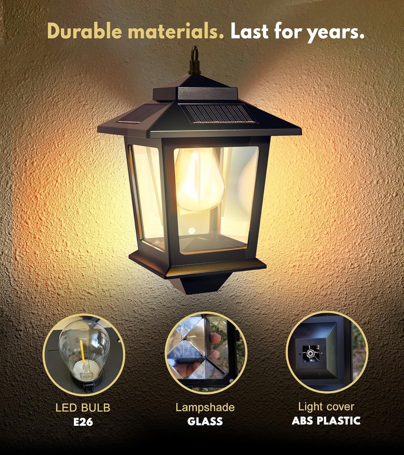 PASAMIC Paquete de 2 faroles solares de pared con bombilla r