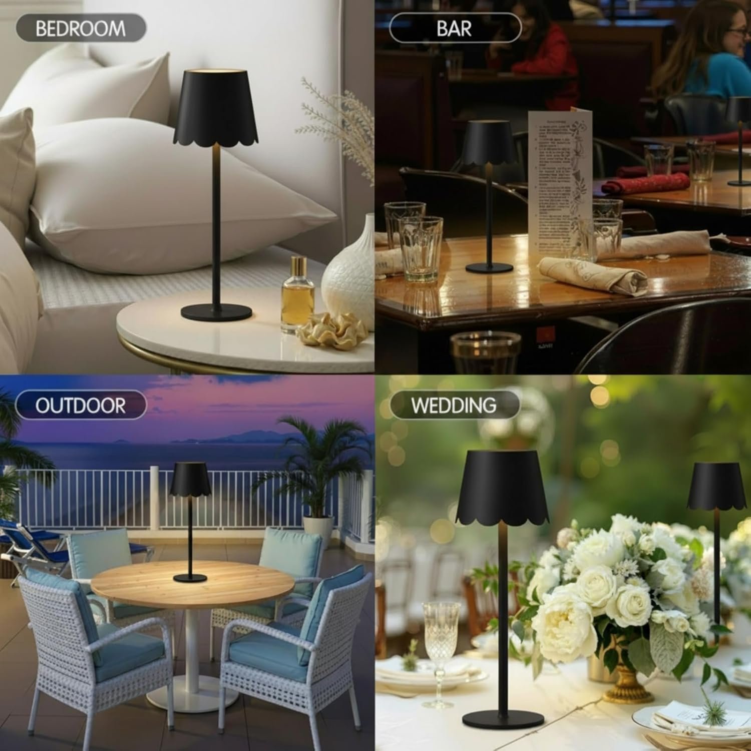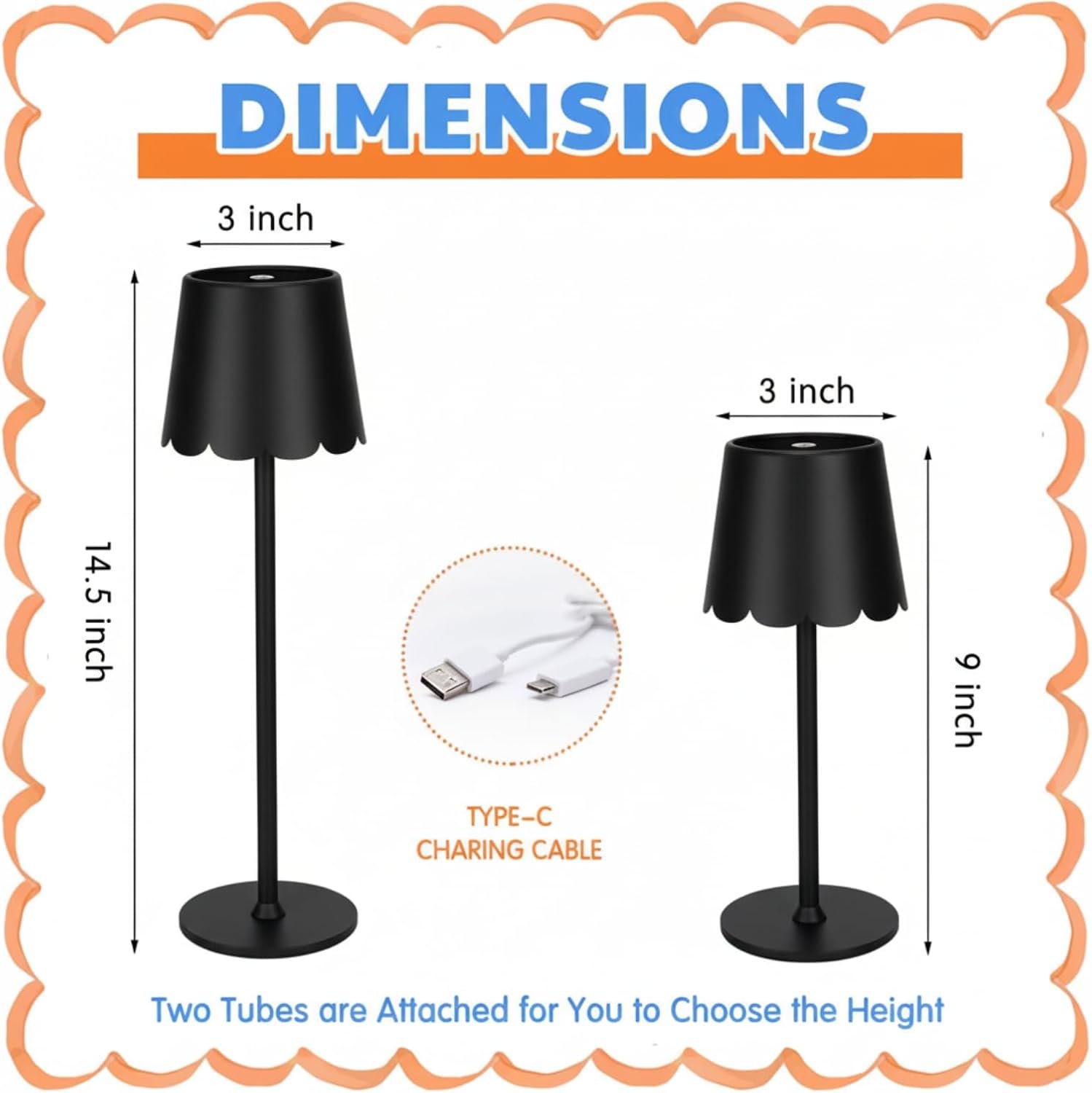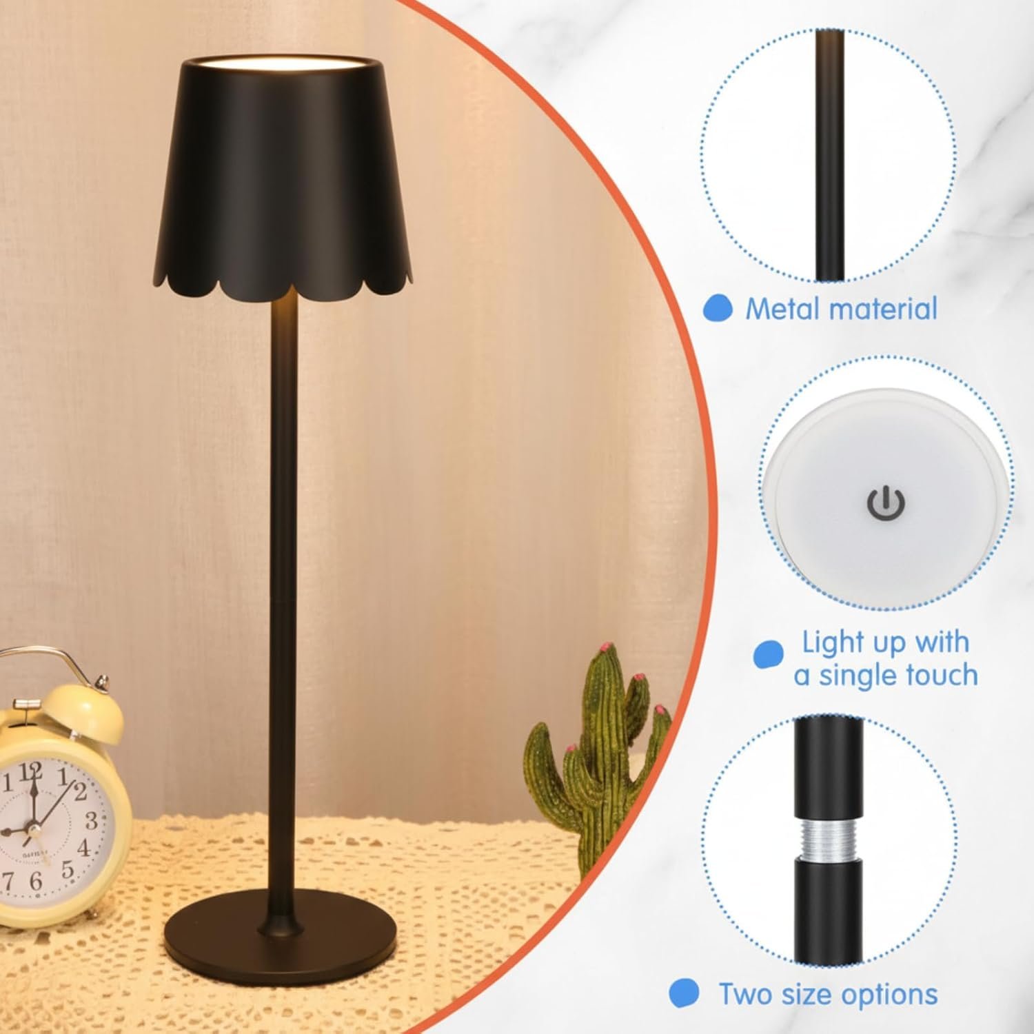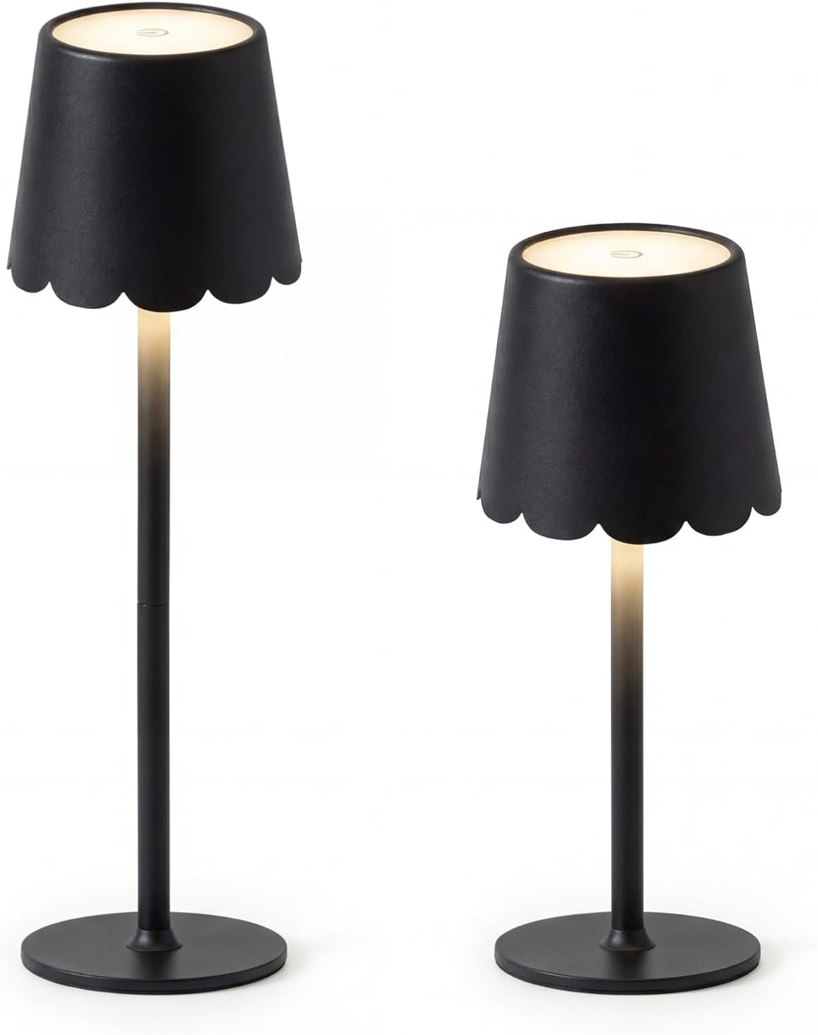 Componentes incluidos: 2 lámparas de mesa inalámbricas LED con pantalla de borde festoneado