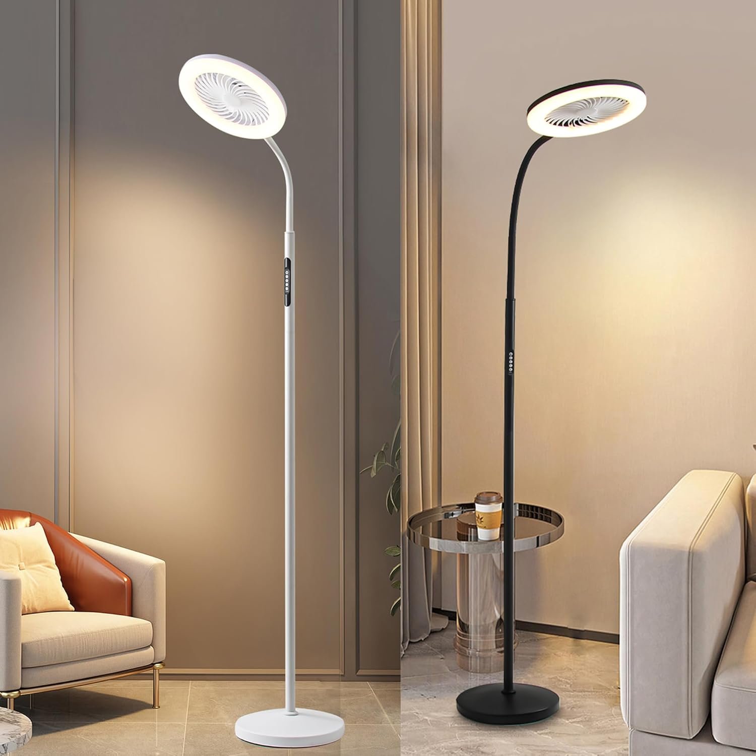 Doble uso: la lámpara y el ventilador se combinan en uno, ahorrando espacio. Este ventilador de piso silencioso controlado por tacto tiene tres velocidades. Utilizando un motor de CC de alta calidad, el ventilador es muy silencioso en cualquier entorno de trabajo y no interfiere con el sueño y el aprendizaje. Atenuación infinita: una atenuación infinita que puede ajustar el brillo. Tiene tres temperaturas de color que se pueden ajustar, y utiliza componentes emisores de luz LED de alta calidad y pantallas nano mate para hacer que la luz sea brillante, suave y no ciega. Es muy adecuado para aprender o trabajar bajo la luz y se puede aplicar a varias escenas. Ángulo, velocidad y brillo ajustables Establece fácilmente la posición y el ángulo de la luz. La lámpara de techo de la lámpara de pie puede ajustar la dirección de iluminación, lo que facilita el ajuste al área que necesita iluminación. Admite atenuación ilimitada, y el ventilador tiene tres engranajes para satisfacer tus necesidades de brillo y refrigeración. Estable y seguro: las luces de dormitorio tienen una base circular resistente que no se caerá incluso si son derribadas por niños o mascotas; las luces LED internas están bien protegidas por una carcasa resistente. Sin parpadeo ni deslumbrante, esta luz de lectura imita la luz natural y emite luz suave, ayudando a reducir la fatiga ocular Estable y duradero Hecho de metal de alta calidad, resistente, a prueba de óxido y duradero. Después de la certificación 3C, la calidad está garantizada. La base pesada evita la inclinación y es fácil de instalar.