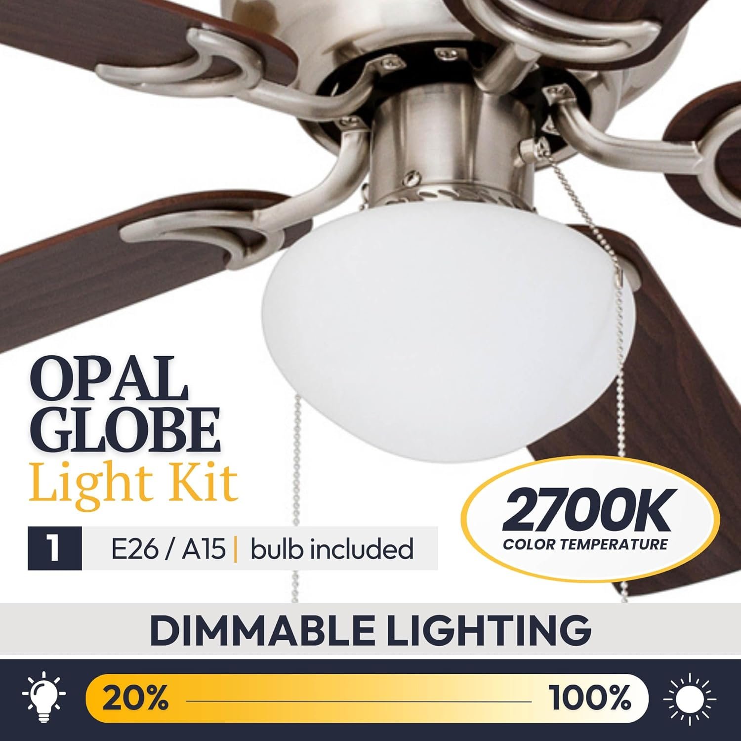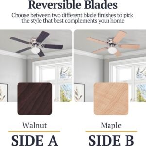 Ventilador de techo interior enfría habitaciones más pequeñas: este ventilador interior de 106,7 cm es ideal para espacios interiores de hasta 100 pies cuadrados. Ideal para dormitorios de invitados, oficinas, cocinas y estudios; En invierno, invierte la dirección de este ventilador para circular aire caliente a baja velocidad Ventilador de techo con cadena de tracción: controla la luz y la velocidad de tu ventilador con las 2 cadenas de tracción; 1 cadena opera las 3 velocidades del ventilador mientras que la otra enciende y apaga el kit de luces Diseño elegante y funcional: Este ventilador de techo de montaje al ras ofrece un elegante diseño de montaje abrazadera de perfil bajo construido para habitaciones con techos bajos; Las 5 elegantes aspas de doble acabado cuentan con 2 opciones de color modernas, Nogal Marrón y Arce Marrón, para fáciles actualizaciones de decoración 3 velocidades silenciosas del ventilador para una comodidad personalizable: Nuestro ventilador de techo de bajo perfil cuenta con 3 velocidades, todas diseñadas para proporcionar un disfrute silencioso, ya sea usando la velocidad más baja para una circulación de aire ligera o la velocidad más alta para una circulación máxima Diseño de calidad: este ventilador de techo tradicional tiene un motor de alta capacidad que ofrece un flujo de aire potente, pero silencioso; nuestros ventiladores también están certificados por ETL y diseñados en Estados Unidos
