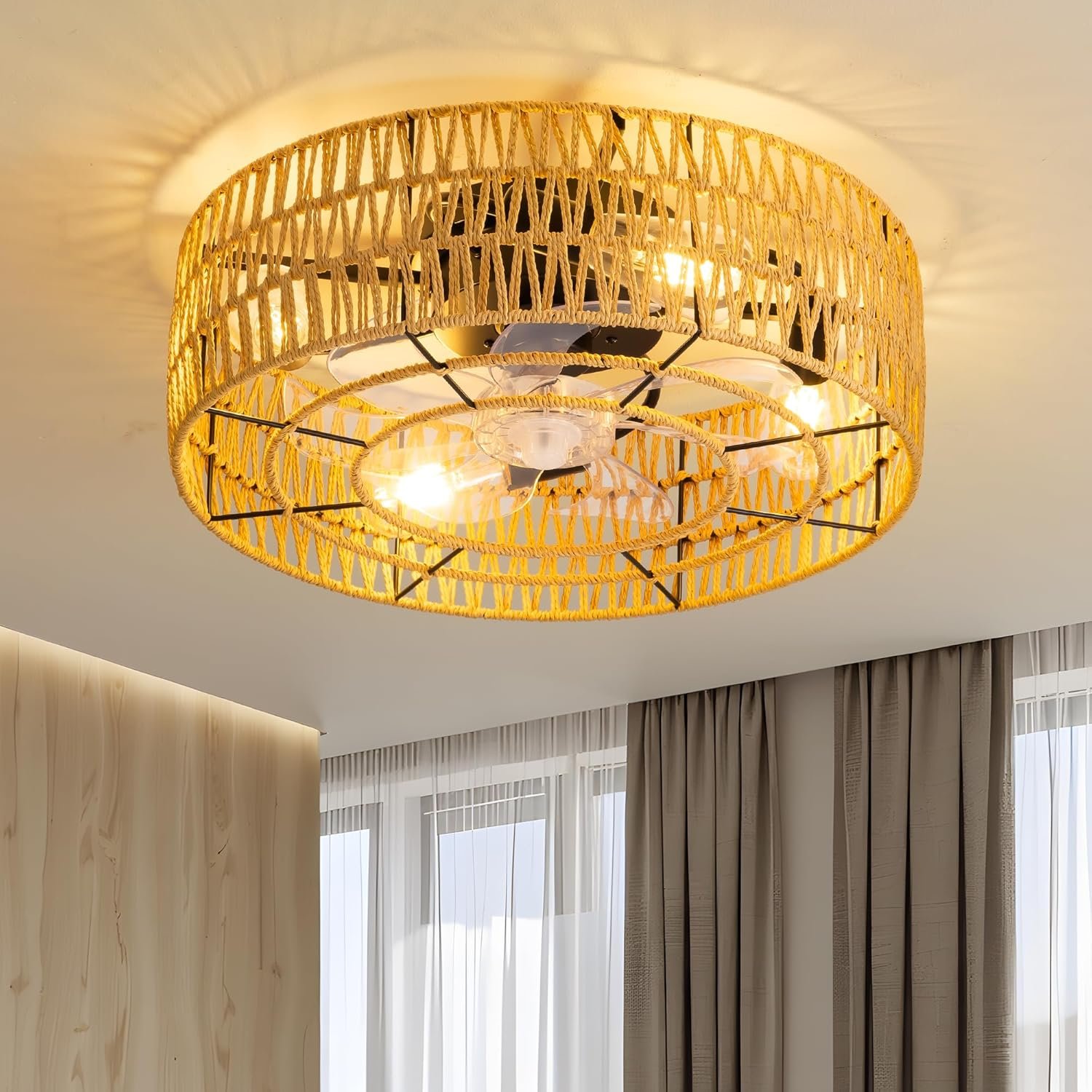 PUSU Ventilador de techo estilo jaula bohemio con pantalla d