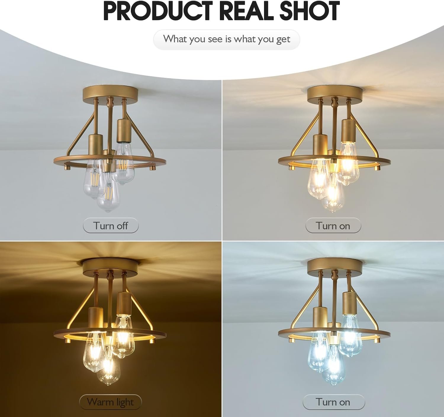 Diseño de lámpara de techo dorada: Esta lámpara de techo de montaje empotrado estilo granja moderna presenta un marco redondo abierto de metal combinado con una cubierta de metal para facilitar el reemplazo de bombillas y la limpieza. Amplia aplicación: ideal para cocina, dormitorio, lavandería, entrada, pasillo, vestíbulo, armario, estudio y cualquier espacio que te guste. Fácil de instalar: viene con todos los accesorios de montaje e instrucciones para una instalación rápida. Hay un video de visualización y un video de instalación al final de la imagen principal para referencia. Regulable: Compatible con luces LED, incandescentes, Edison, CFL o halógenas (bombilla no incluida). Si tienes un regulador de intensidad compatible, puedes atenuarlo completamente para crear la atmósfera que desees. Servicio post-venta: Si tiene alguna pregunta sobre el producto, le responderemos y lo resolveremos en el plazo de 24 horas.