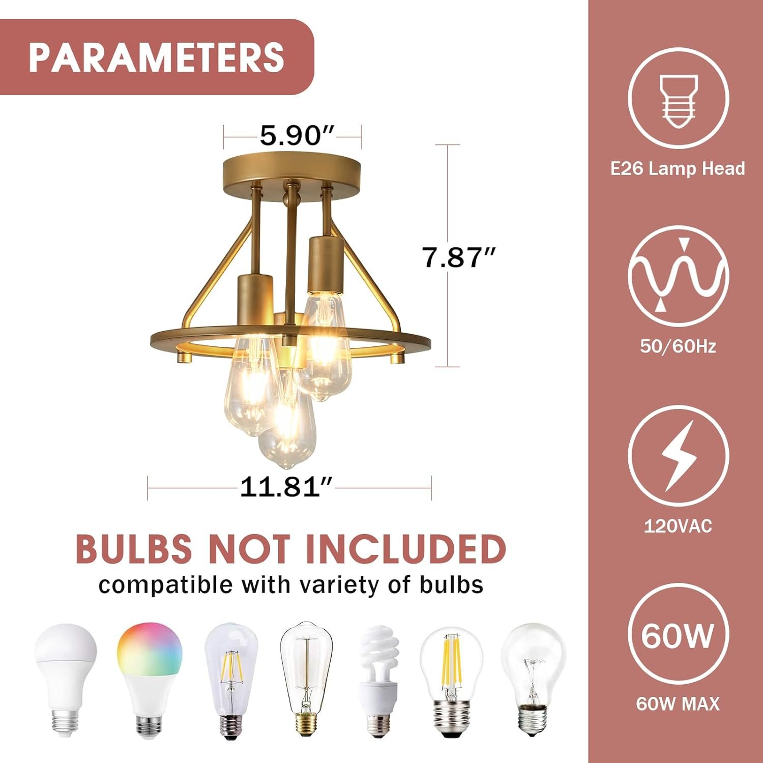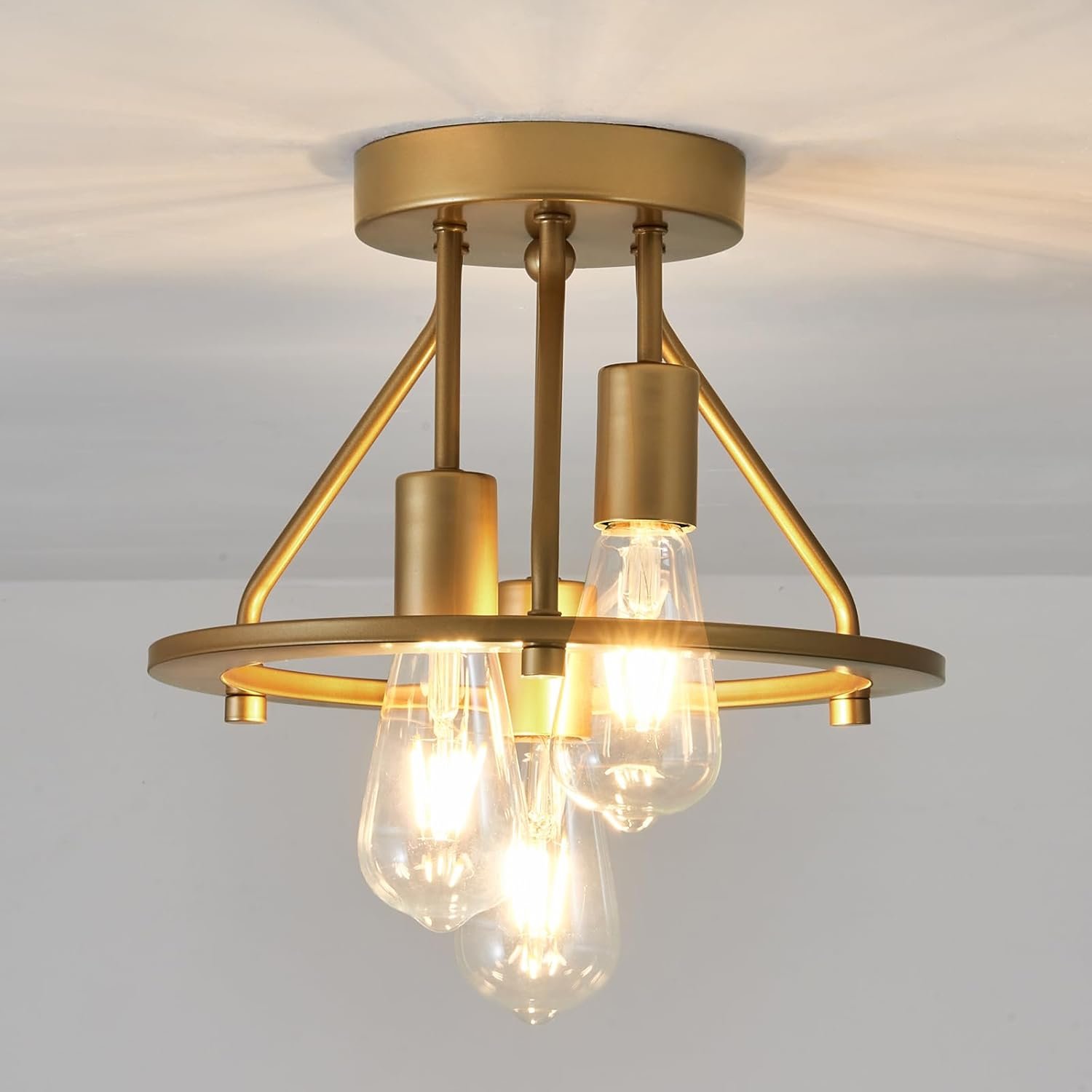 Qgiytp Lámpara de Techo Semiempotrada Dorada de 3 Luces, Acc