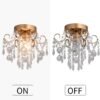Diseño clásico: impresionante lámpara de techo de cristal, accesorio dorado electrochapado y piezas de cristal real, efecto de luz brillante y resplandeciente para crear un ambiente cálido y suave. Fácil de armar: la pequeña lámpara de araña requiere de armado, el cristal está medio montado y es fácil de instalar, las instrucciones son claras. Bombillas: la elegante lámpara de techo de cristal es compatible con cualquier bombilla E26, se requiere 1 bombilla (bombilla no incluida). También se puede regular cuando se utiliza una bombilla regulable y un interruptor de atenuación compatible. Puedes disfrutar de una luz brillante o una luz tenue calmante. Ampliamente utilizado: elegante lámpara de araña de techo de cristal es un accesorio perfecto para pasillos, dormitorios, sala de estar, comedor, cocina, bar, hotel, balcón, escaleras para habitación de los niños, espacios pequeños, etc.