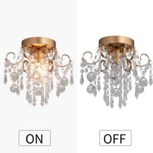 Q&S Mini lámpara de techo de cristal, pequeña lámpara de