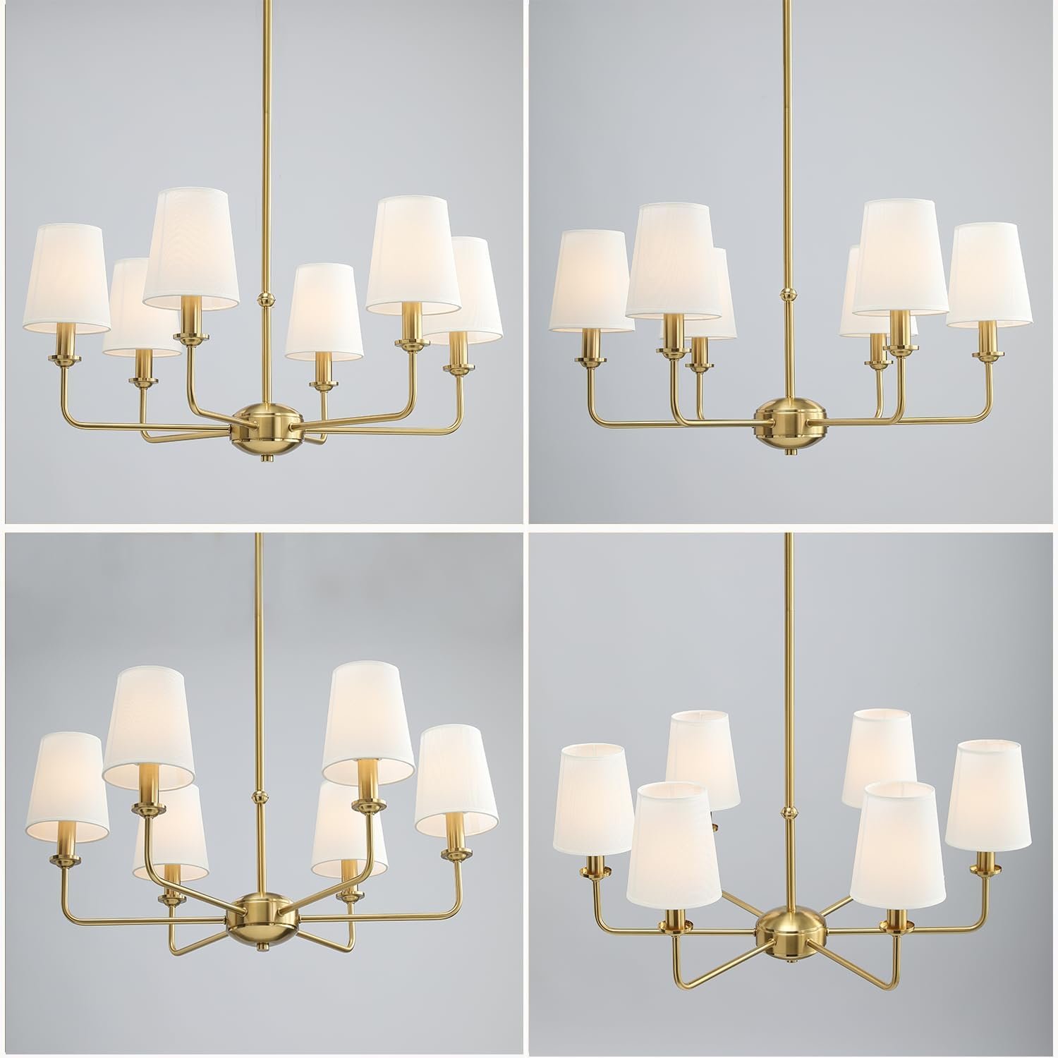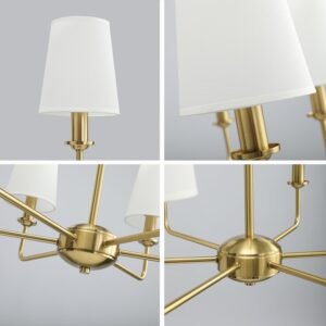 Diseño industrial chic atemporal: con tonos dorados cepillados de primera calidad y lino blanco suave, este candelabro de 6 luces combina el encanto vintage con la funcionalidad moderna. Perfecto para crear un ambiente acogedor y romántico en tu sala de estar, comedor, dormitorio o entrada. Materiales duraderos y de alta calidad: cuenta con una construcción de metal resistente con tratamiento de oxidación antioxidante para un brillo duradero. Las cortinas de tela son resistentes al calor, ecológicas y difunden la luz suavemente para reducir el deslumbramiento mientras mantienen el brillo. Postes totalmente ajustables para alturas personalizadas: cada lámpara colgante cuenta con postes dorados flexibles que te permiten subir, bajar o inclinar fácilmente luces individuales. Personaliza la longitud total de caída de la lámpara de araña (por ejemplo, más baja sobre las islas de cocina o más arriba sobre las mesas de comedor) para adaptarse perfectamente a tu espacio, sin necesidad de herramientas complejas. Fácil instalación y listo para usar Incluye todos los accesorios de montaje necesarios e instrucciones paso a paso (idioma español no garantizado) para una configuración rápida. Diseñado para una instalación de bricolaje sin complicaciones, incluso para principiantes (bombillas no incluidas). Satisfacción garantizada: respaldado por un servicio de atención al cliente receptivo. Si tienes alguna pregunta o inquietud, ponte en contacto con nosotros para obtener ayuda, estamos comprometidos con tu satisfacción al 100%.