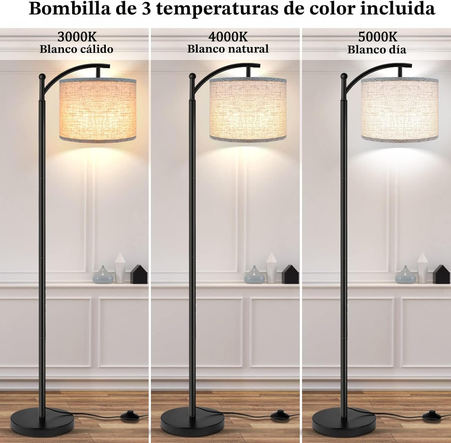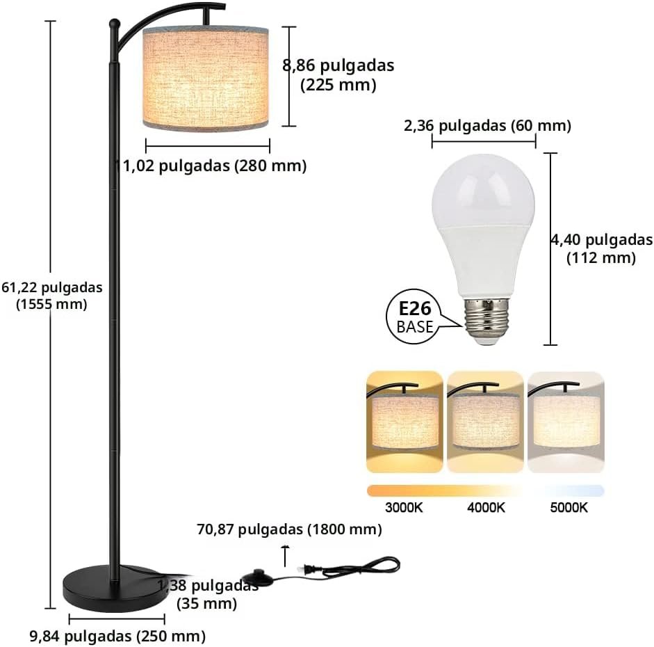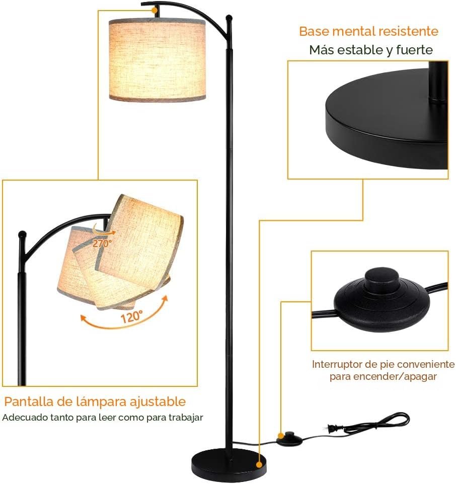 Incluye pantallas para lámpara adicionales: nuestra lámpara para sala viene con 2 pantallas, lo que significa que puedes cambiar simplemente los colores según el estilo de decoración de la casa. Luz suave que protege los ojos: esta lámpara de pie proporciona una suave iluminación blanca cálida de 3000 K que crea un ambiente cómodo para una relajación instantánea. Larga duración y ahorro de energía: incluye una bombilla de bajo consumo de energía. No se quema ni se sobrecalienta, la compra de esta lámpara también está destinada a ahorrar dinero y energía. Práctico interruptor de pedal: fácil de encender y apagar. Deja tus manos libres para hacer otra cosa, te ahorra la molestia de agacharte para apagar la luz. Diseño clásico y sencillo: encaja perfectamente en cualquier lugar de tu hogar.