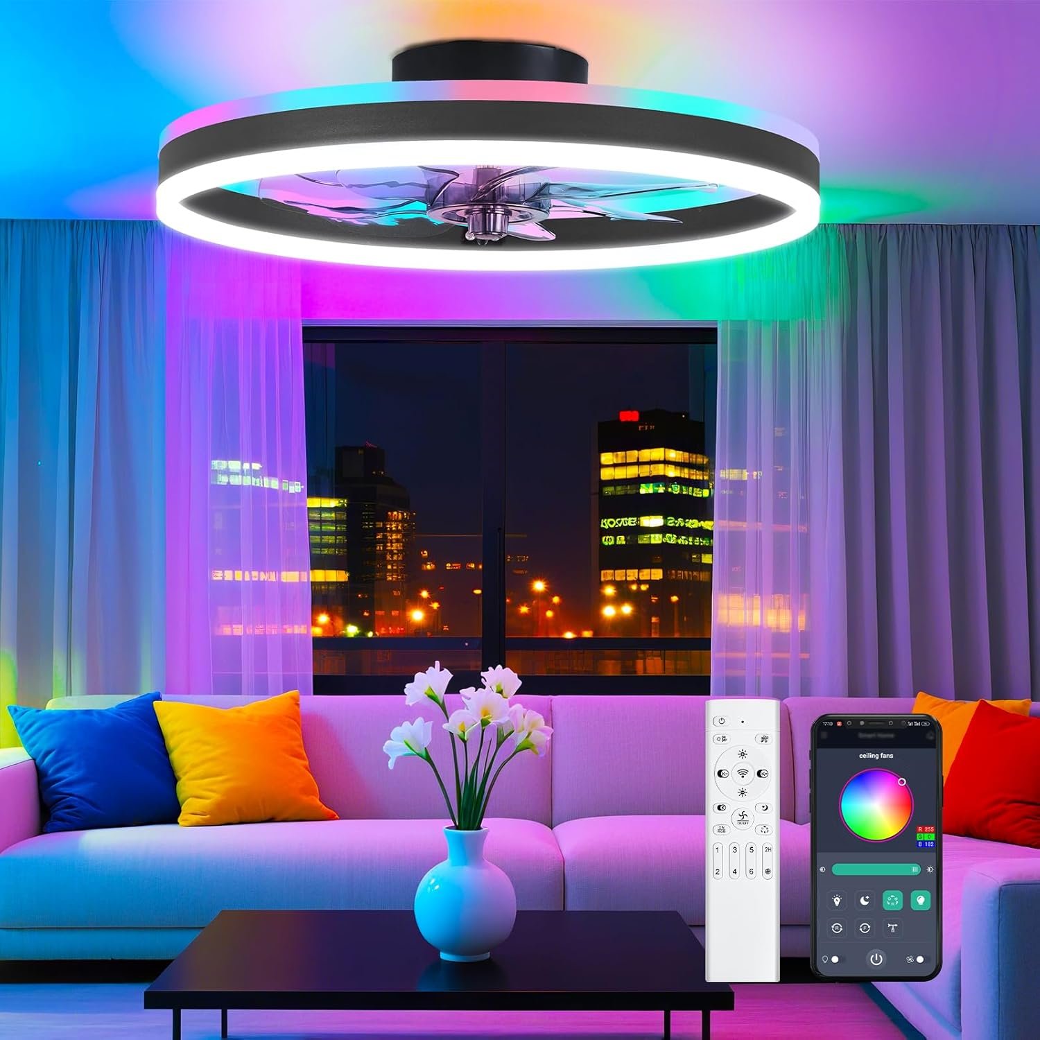 SAMPHON Ventiladores de techo RGB con luces, ventilador de t