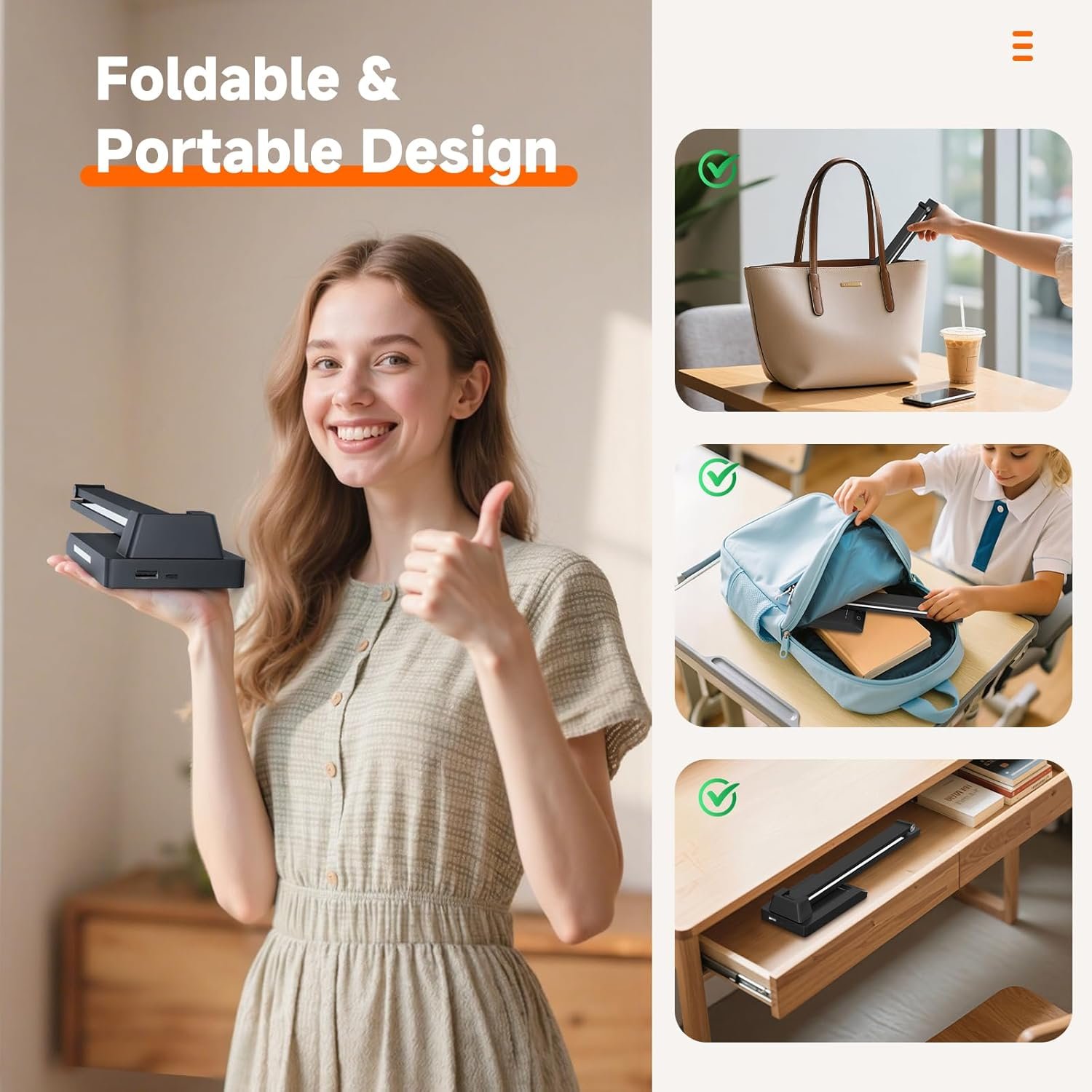 Diseño flexible: esta moderna lámpara de escritorio LED para estudiantes cuenta con una cabeza y un brazo biaxiales ajustables para una máxima flexibilidad. Puede girar hacia la izquierda y hacia la derecha en un brazo plegable de 180° y 90°, lo que te permite dirigir la luz exactamente donde sea necesario con un ángulo de haz de hasta 120°. Puedes ajustar la luz sin esfuerzo ya sea para leer, escribir o trabajar en proyectos. Cuando hayas terminado, dobla la cabeza y el brazo en dos sencillos pasos, y la lámpara está lista para guardar o transportar, perfecta para el hogar, la oficina y el dormitorio universitario. 25 combinaciones de iluminación: nuestra lámpara de escritorio regulable ofrece 5 temperaturas de color (3000K-6000K) y 5 niveles de brillo (12%-100%), fácilmente controlados a través de un botón táctil. Desde una luz cálida y relajante hasta una iluminación brillante y enfocada, esta lámpara de escritorio para el estudio puede adaptarse a tus necesidades. Con un CRI de hasta 80+ y SDCM